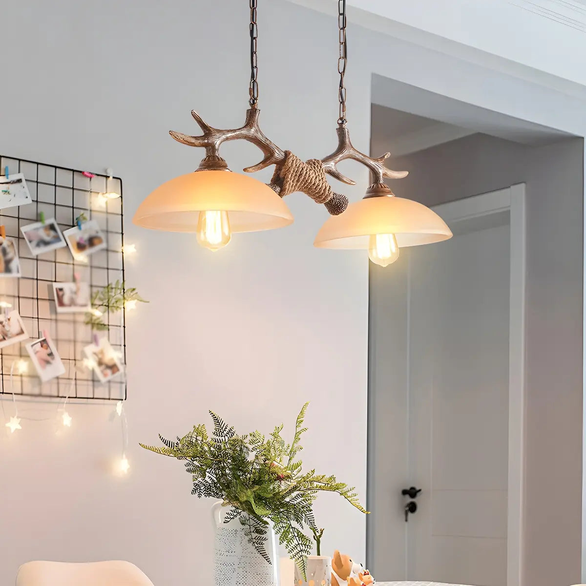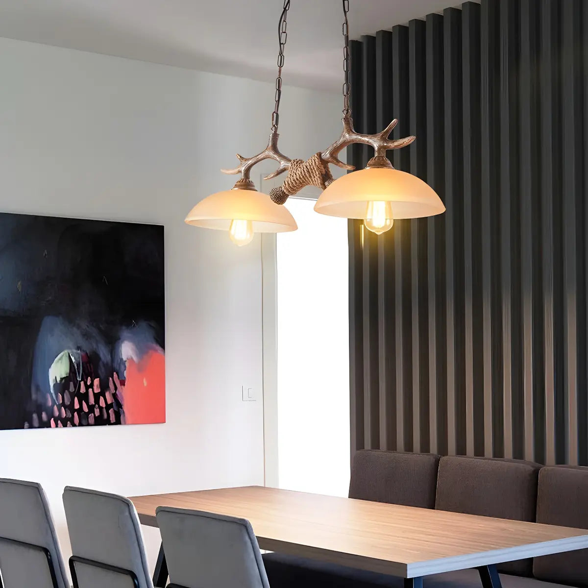 This geometric Rustic chandelier incorporates the charm of nature into home decoration with its unique antler design, perfect for modern and rustic spaces.
