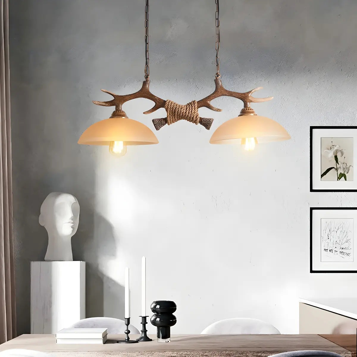 ZOWALA - Antler Down Bowl 2-Light Chandelier