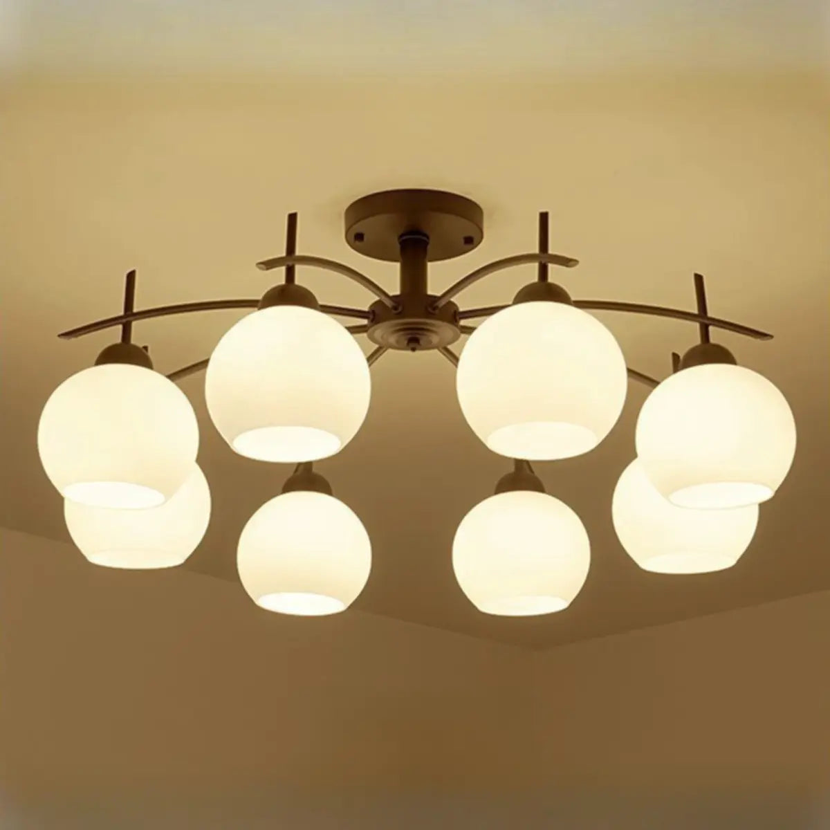 This modern and simple style semi-ceiling lamp has a multi-head metal lamp arm design, showing a unique styling beauty.