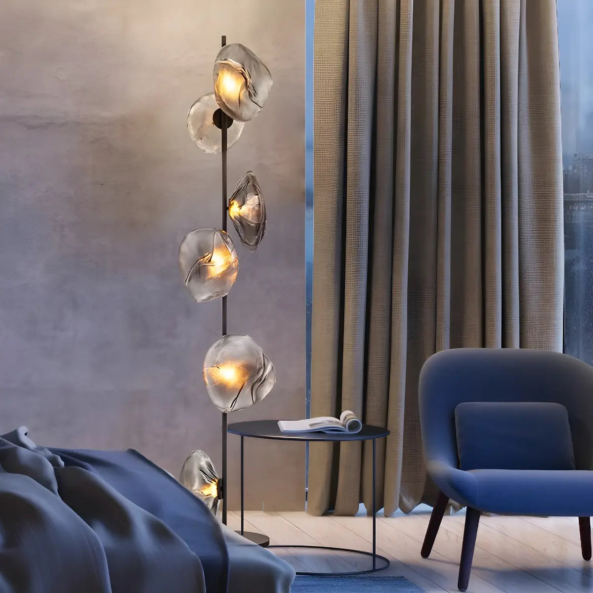 ZOWALA - 6-Light Abstract Glass Black Floor Lamp