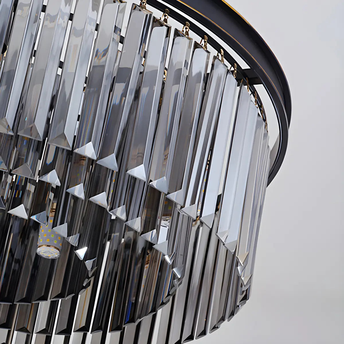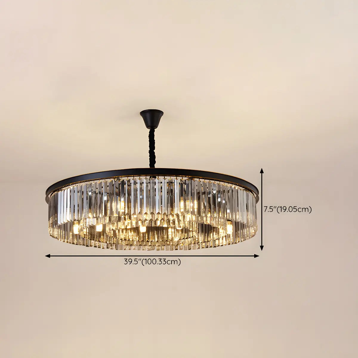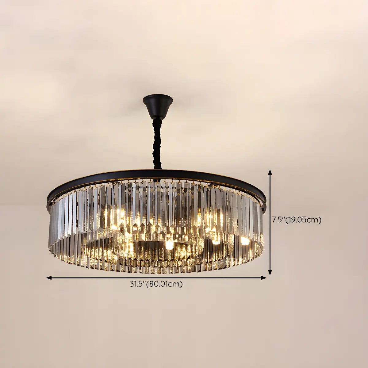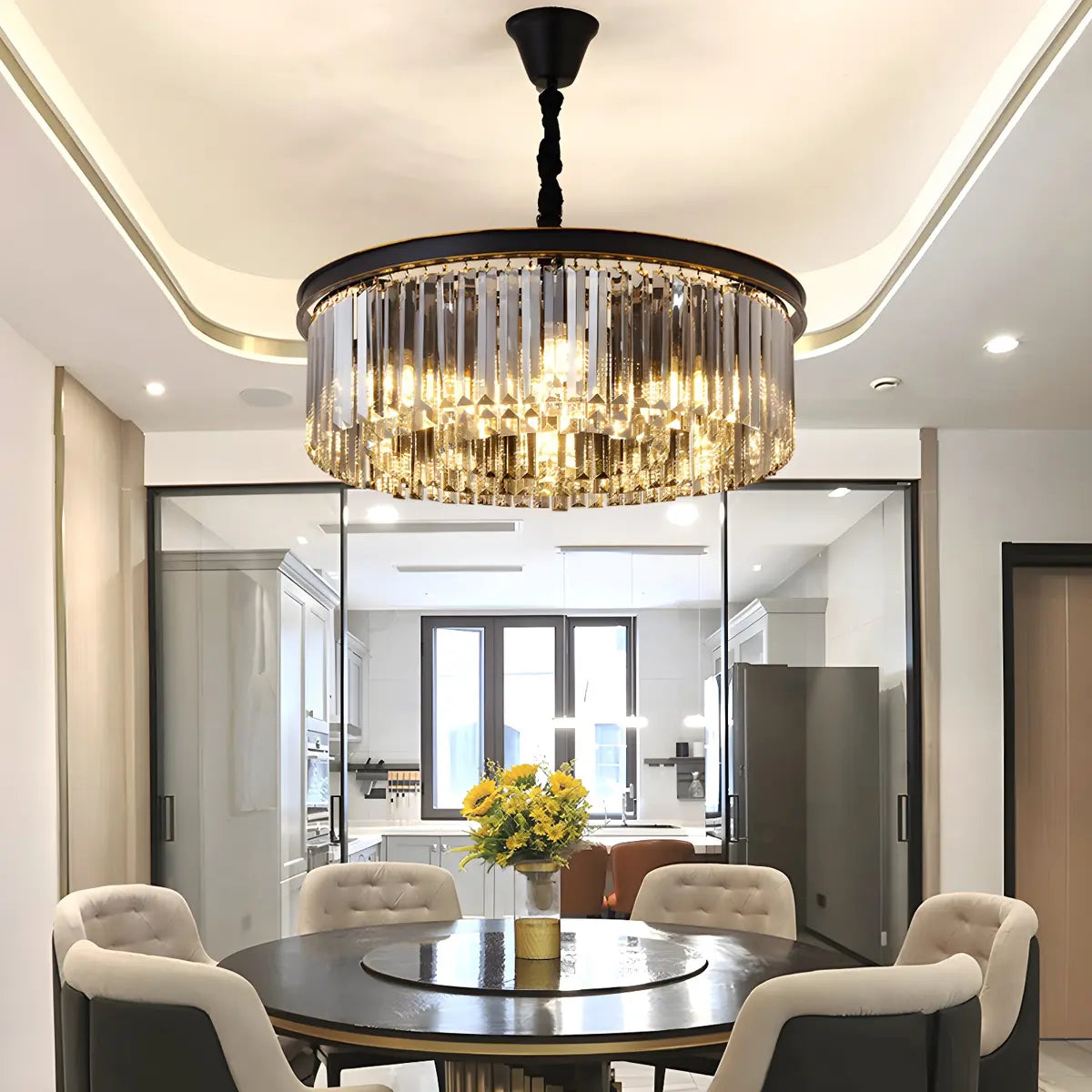 This Black Prismatic Crystal Drum Chandelier is a great choice for modern home decor, adding an air of elegance and luxury to any space.