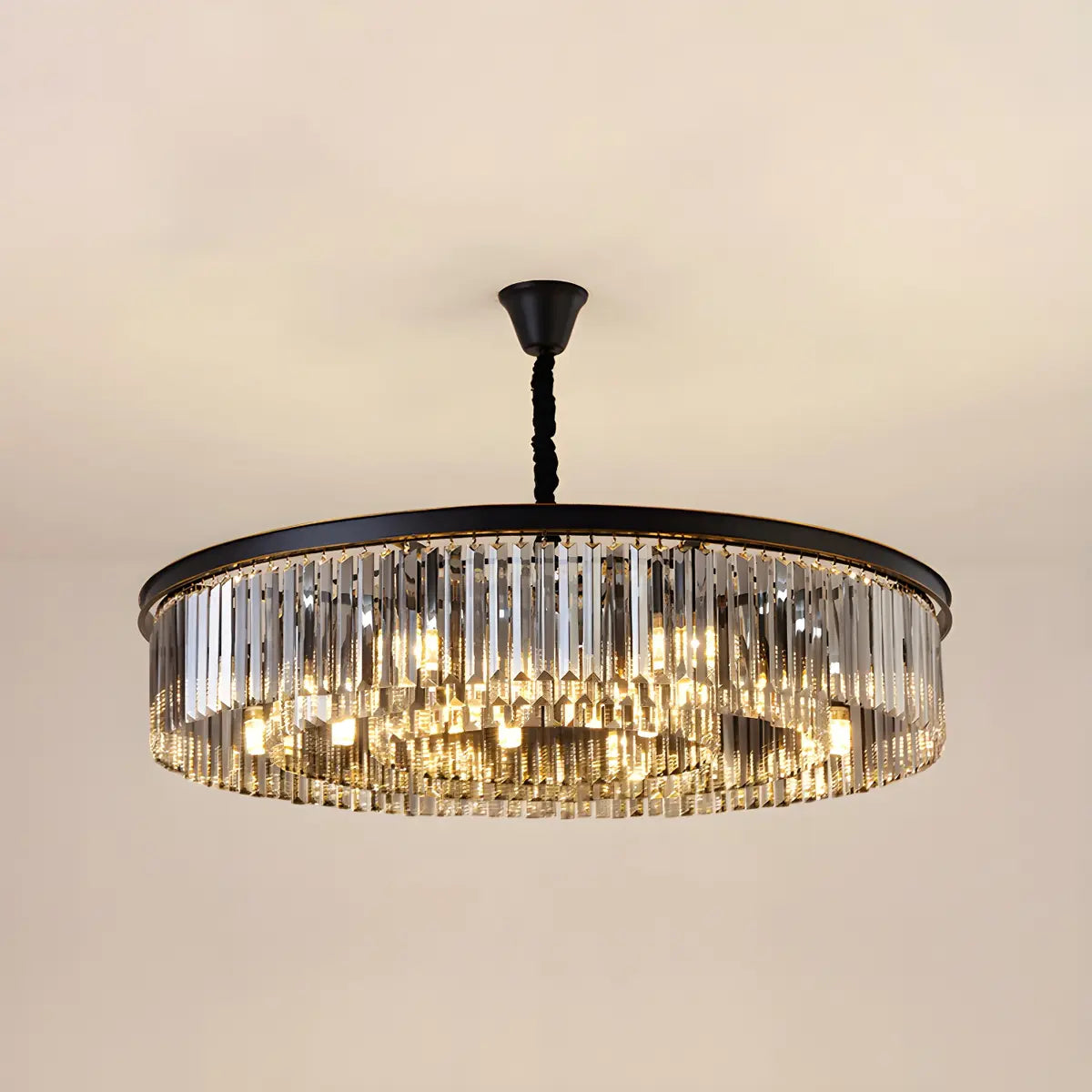 ZOWALA - Contemporary Black Prismatic Crystal Drum Chandelier