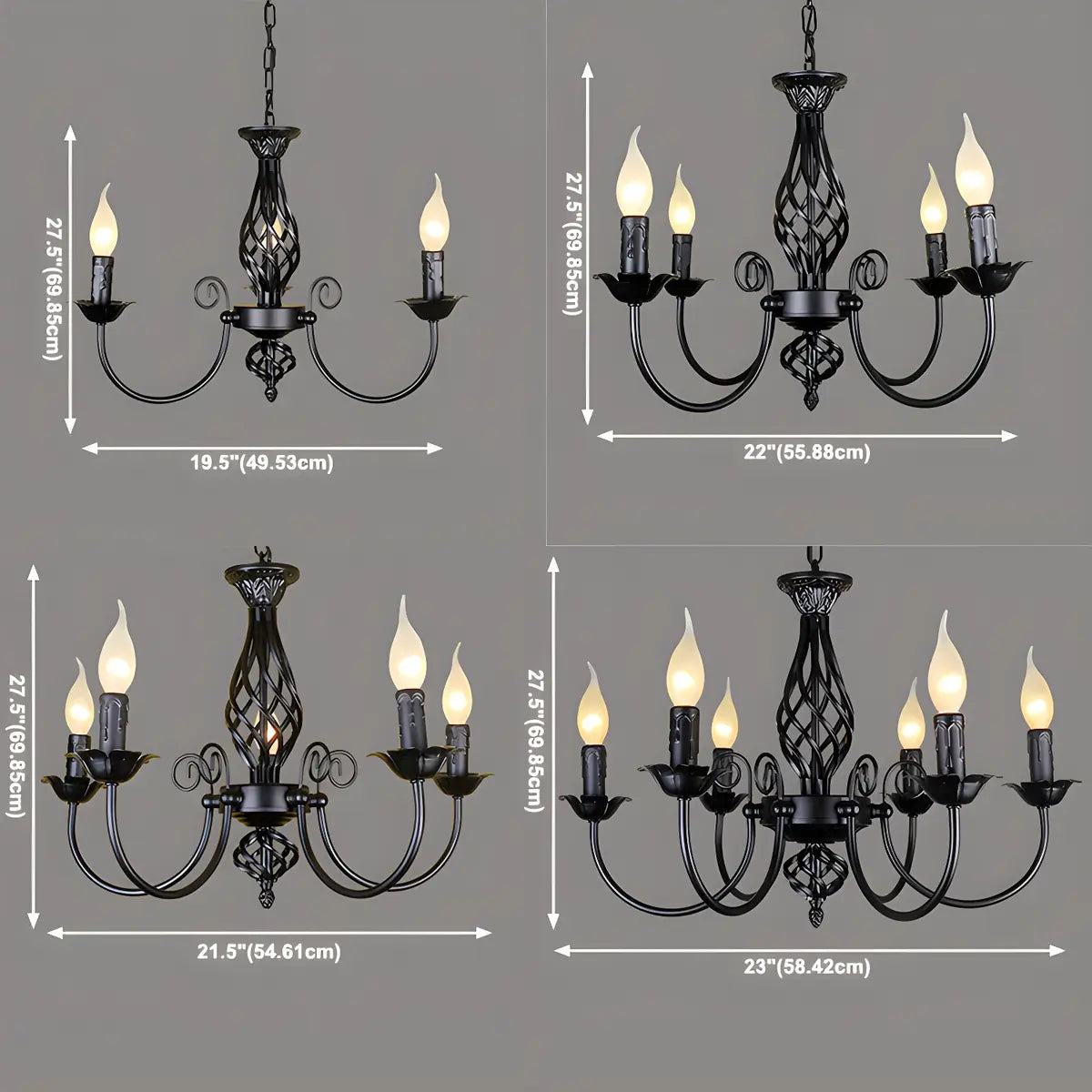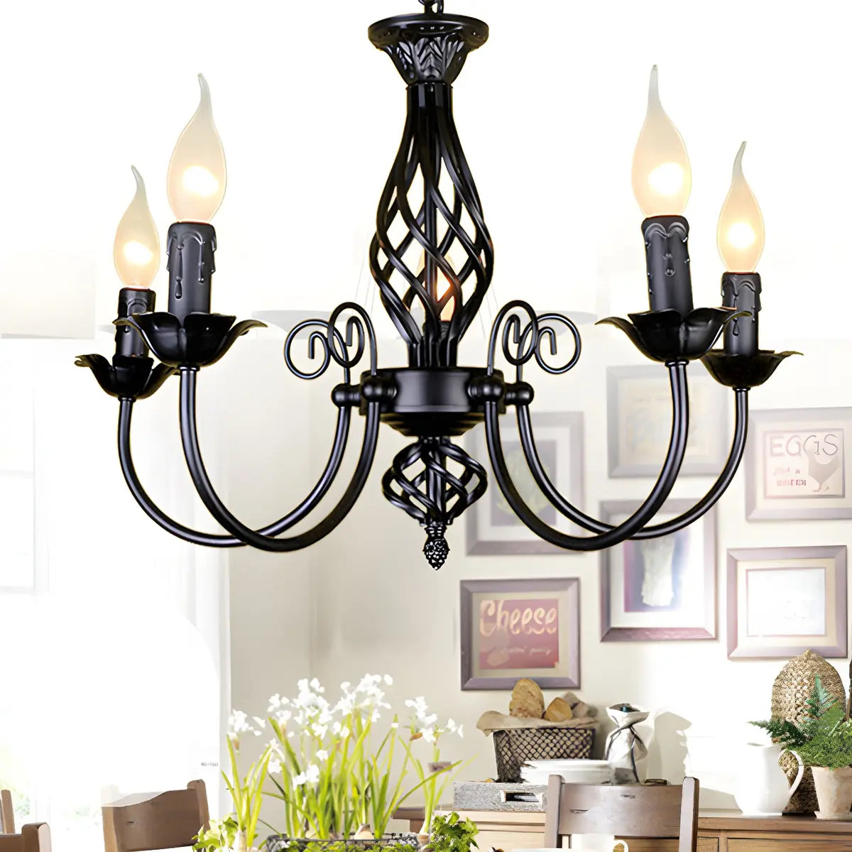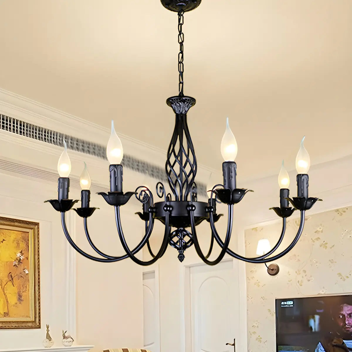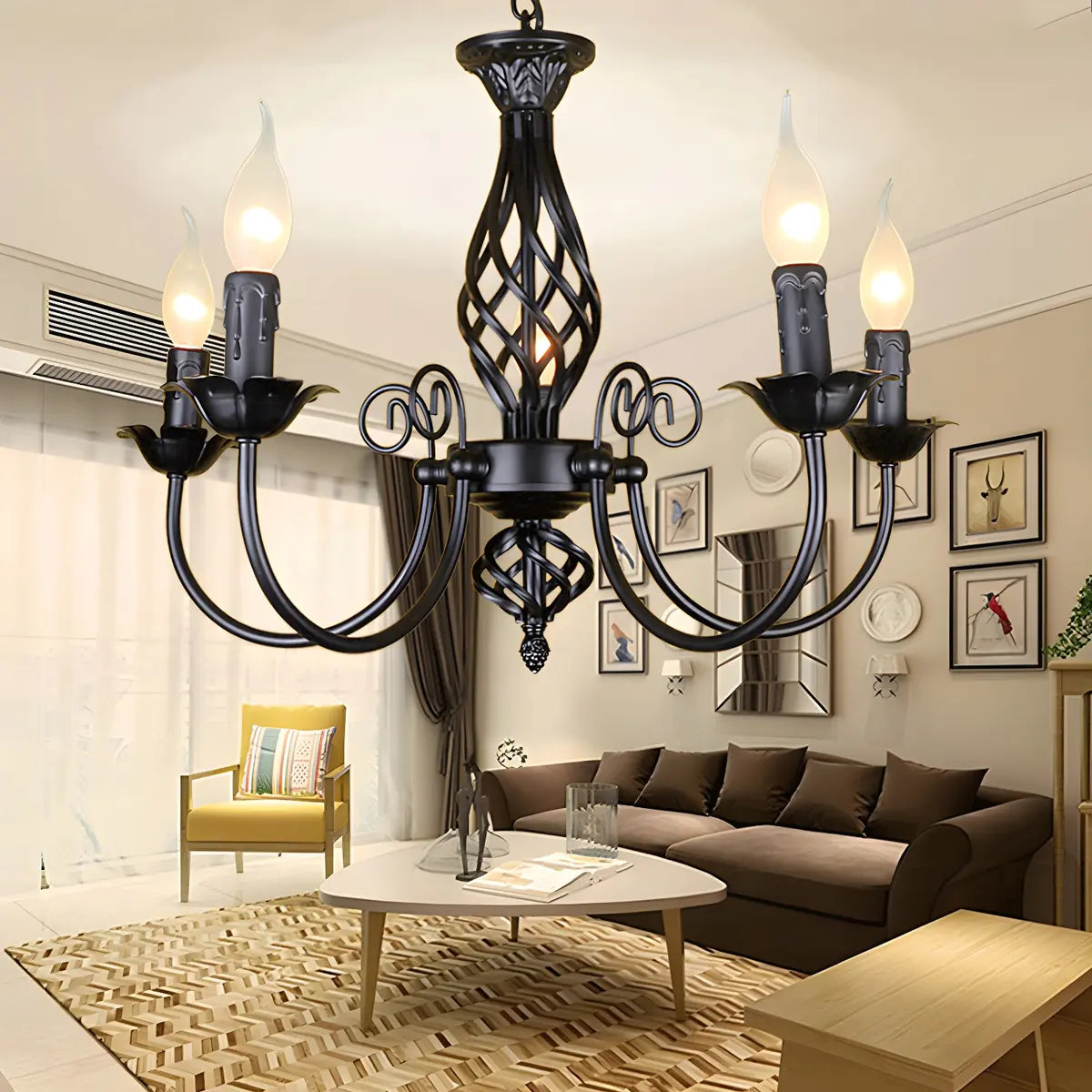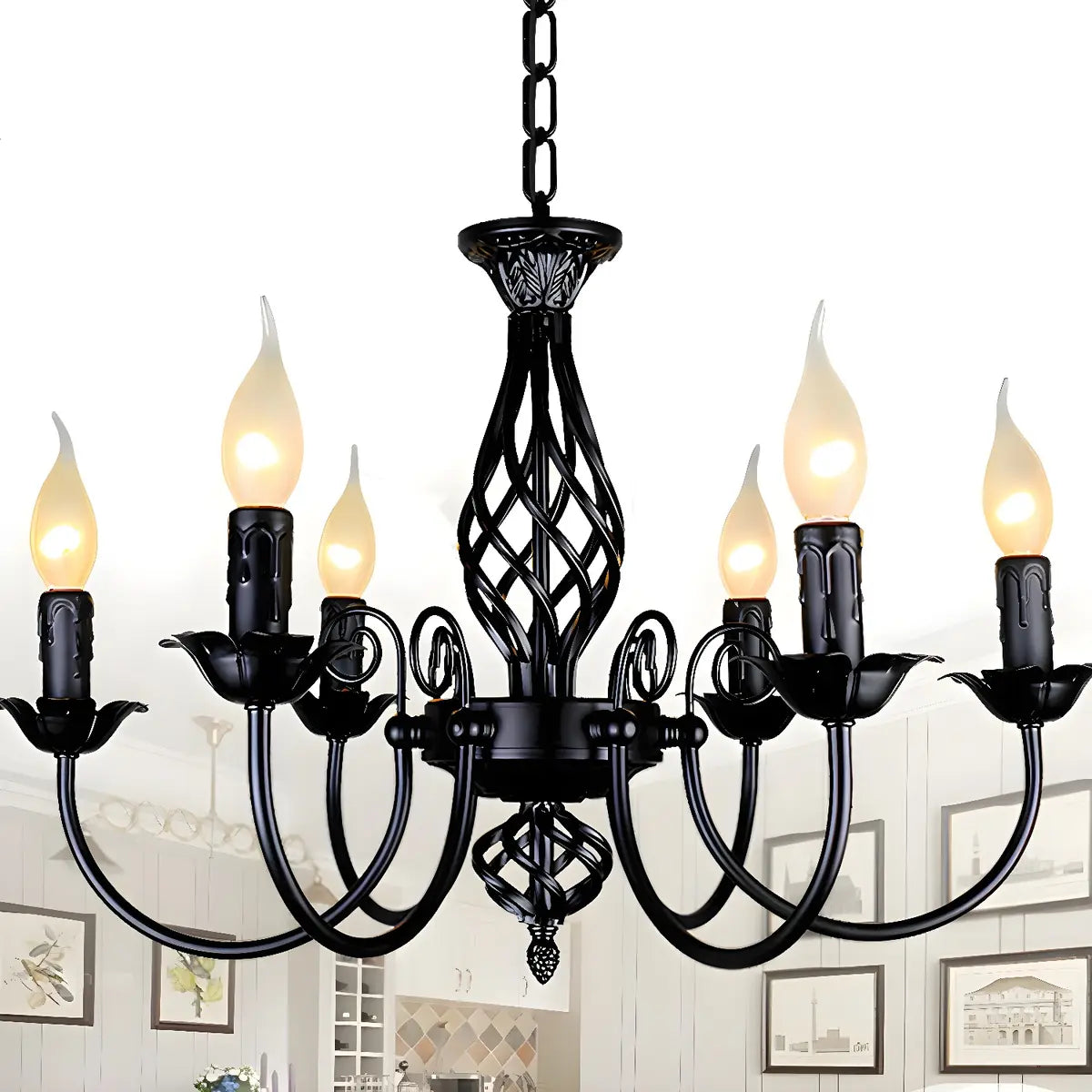 - The metal material ensures the durability and stability of the chandelier. Its exquisite black iron decoration adds a sense of beauty that blends classicism and modernity to the lamp.