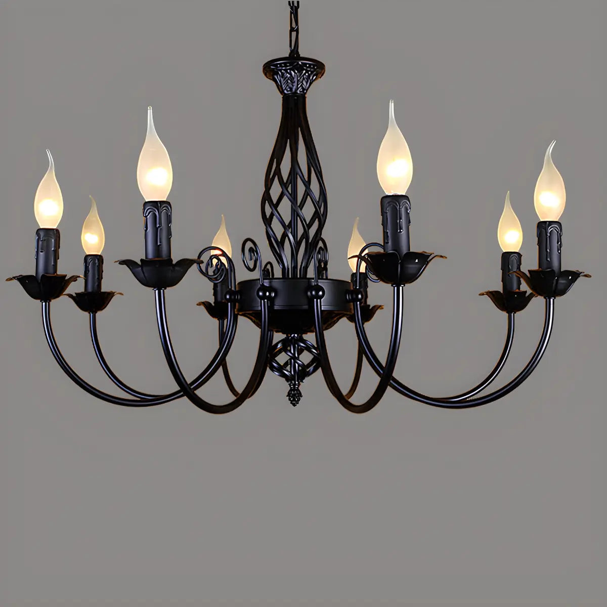 This black iron candle chandelier combines classic design with modern style, adding an elegant atmosphere to any space, whether it is a living room, dining room or entrance. Its unique candle design allows the light to create a warm and soft light and shadow effect in the space.