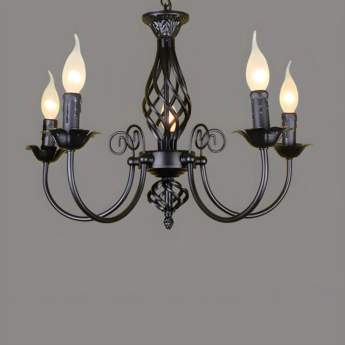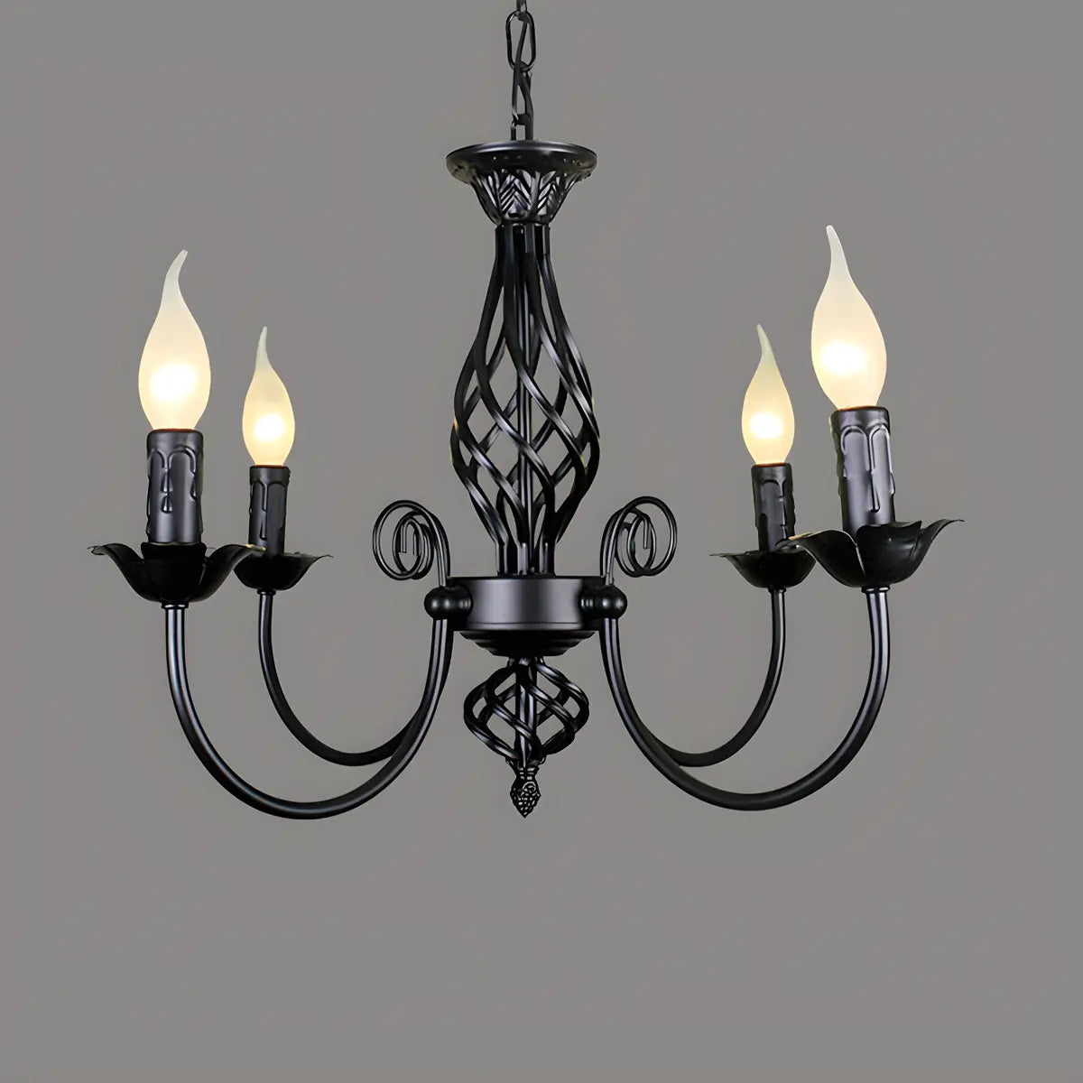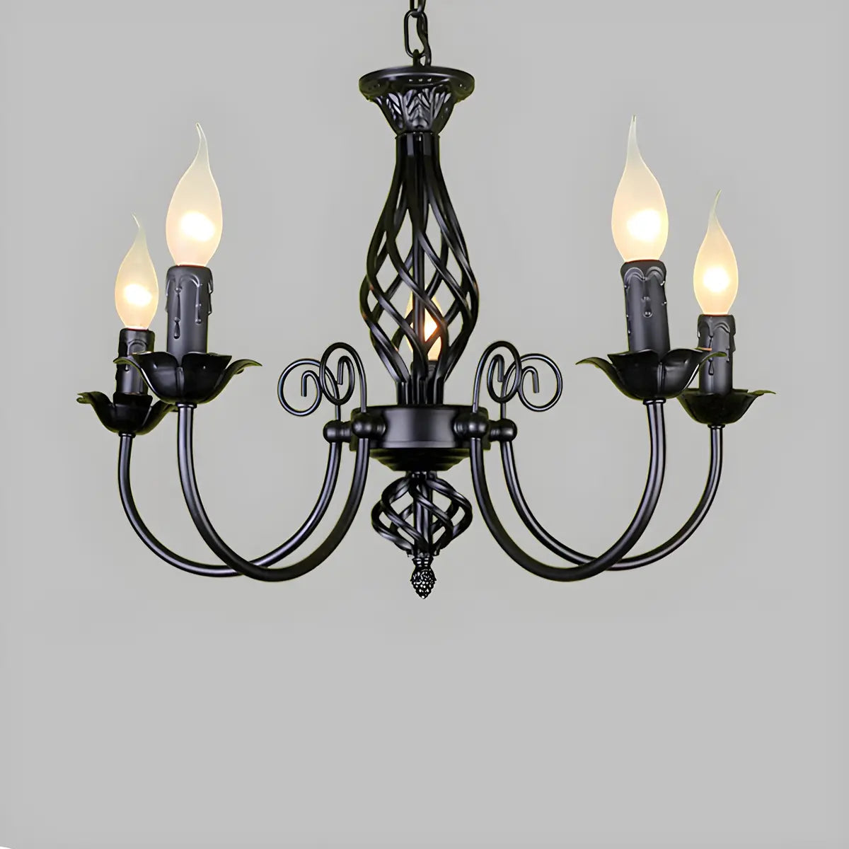 ZOWALA - Black Iron Curve Arm Candle Chandelier