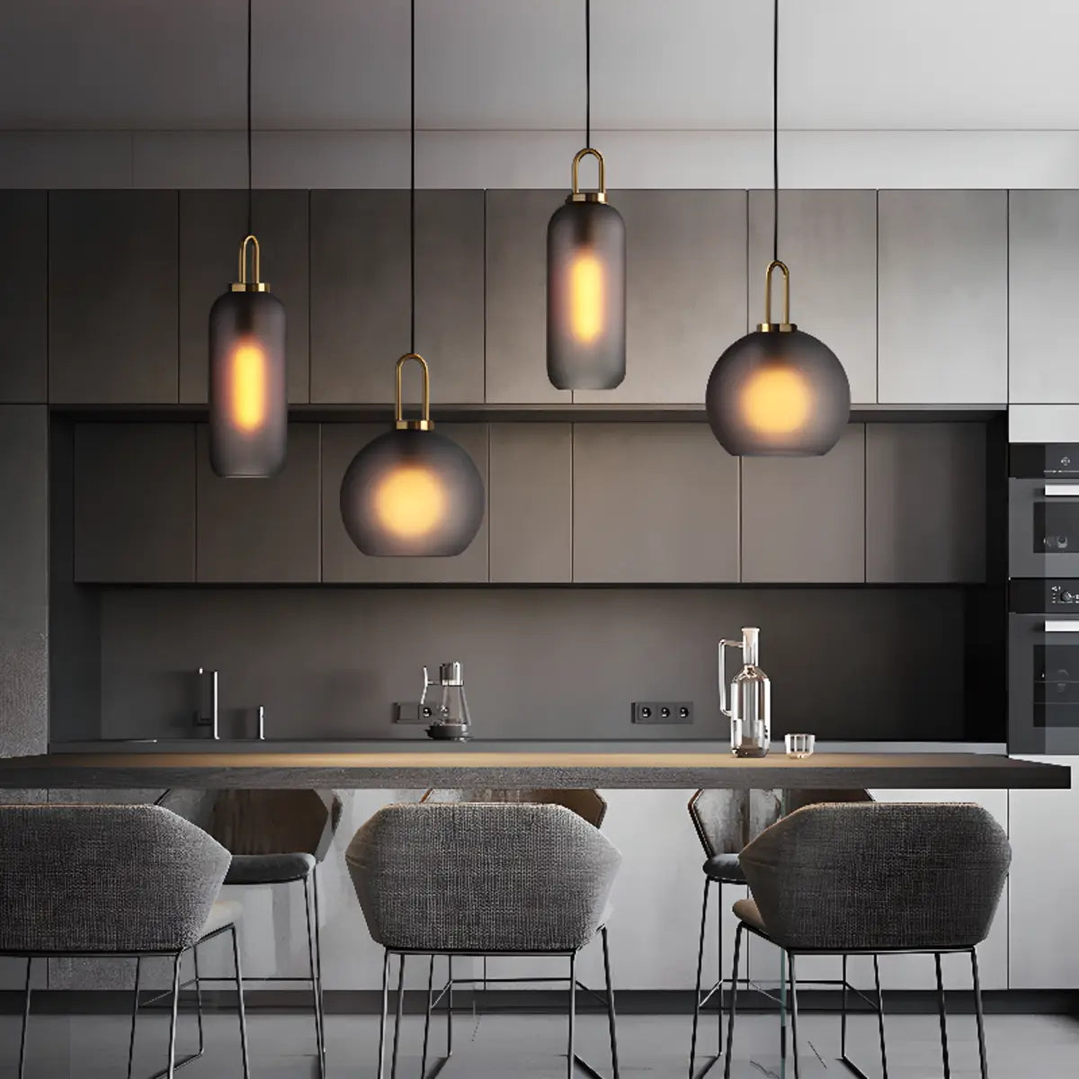 This pendant light is based on a modern and simple style, using a high-grade frosted grey glass shade to create a warm and stylish lighting environment. Its geometric design has a strong visual artistic beauty and can be perfectly integrated above the kitchen island, adding a touch of elegance and sophistication to the entire space.