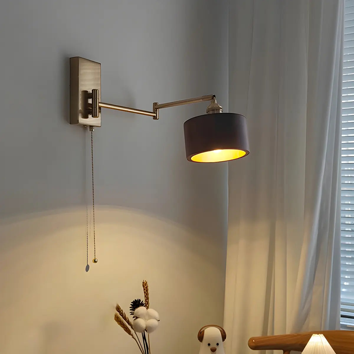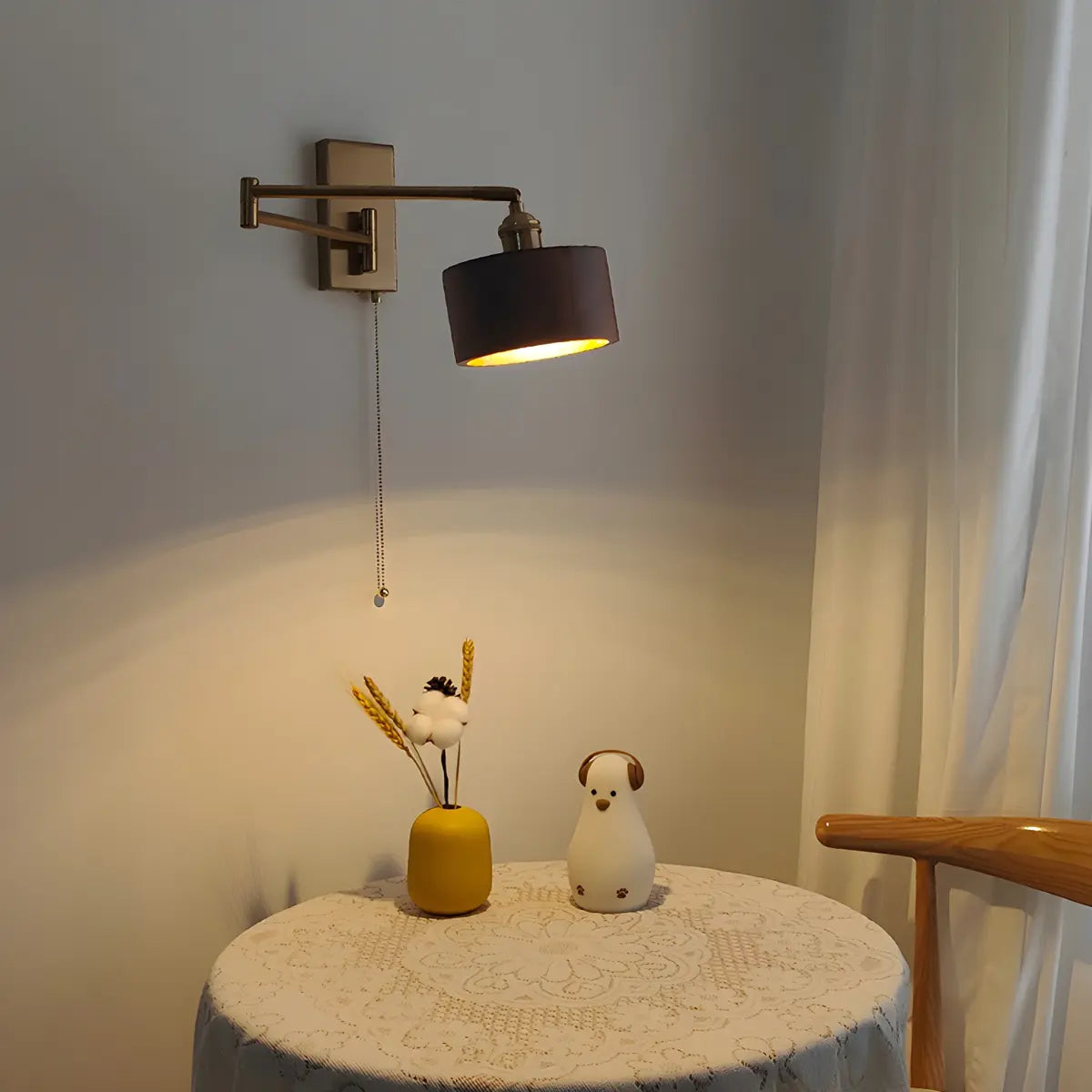 ZOWALA - Gold Brown Wood Cylinder Swing Arm Wall Light
