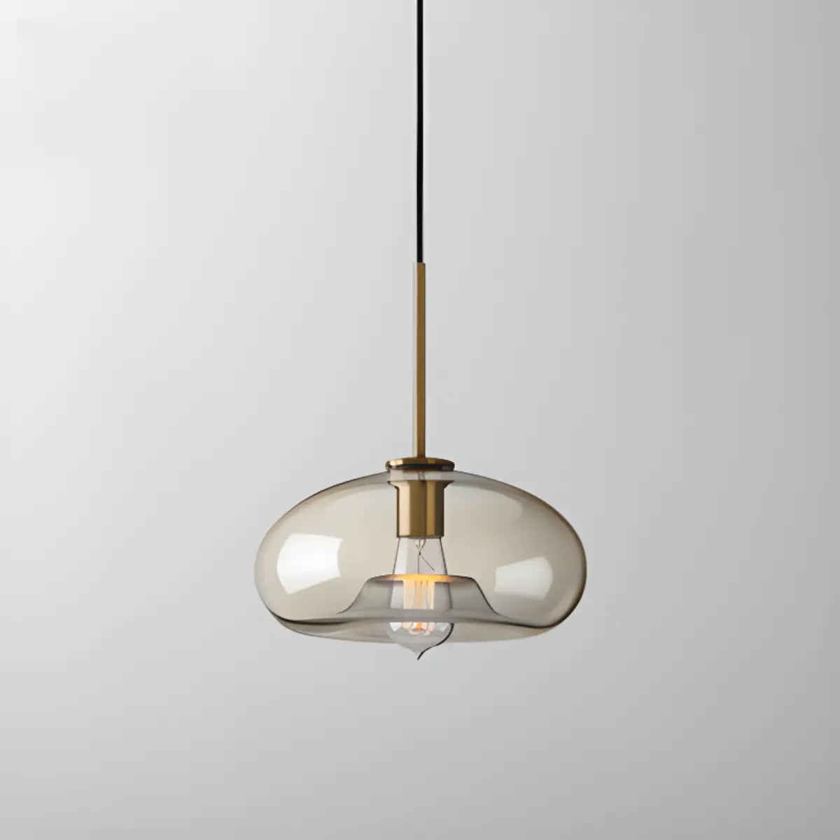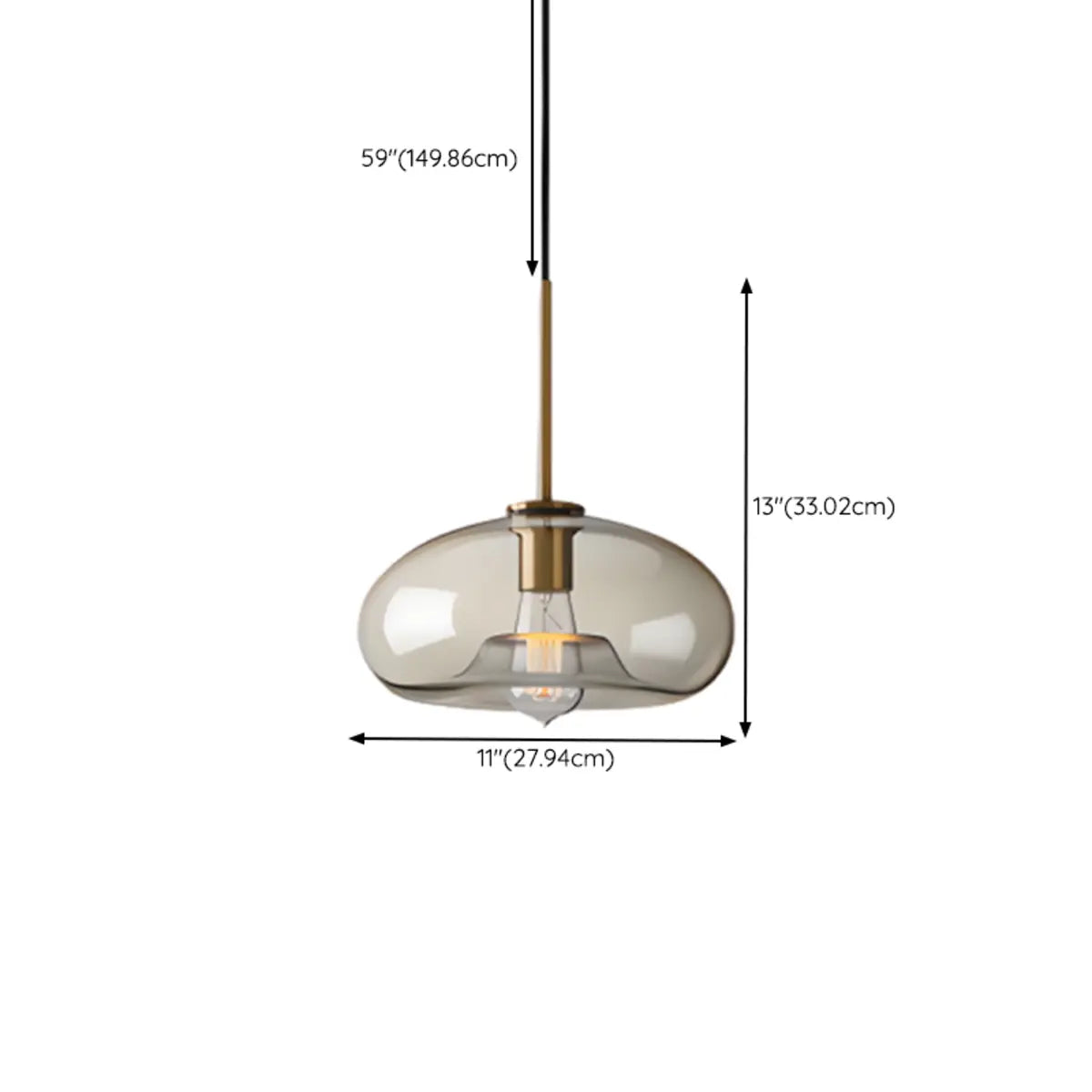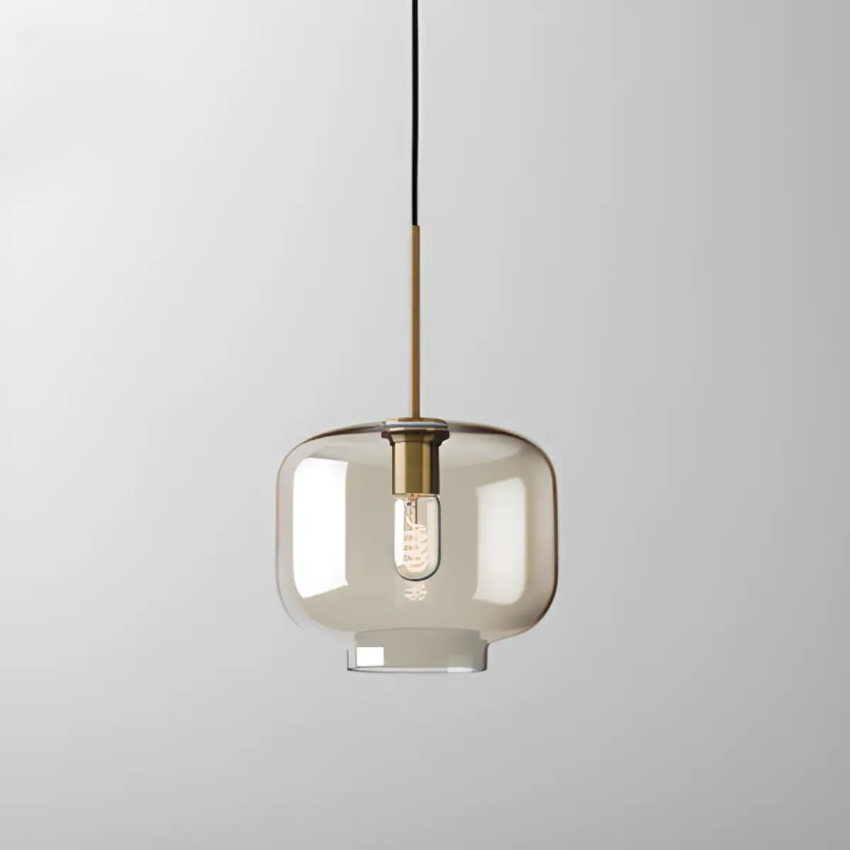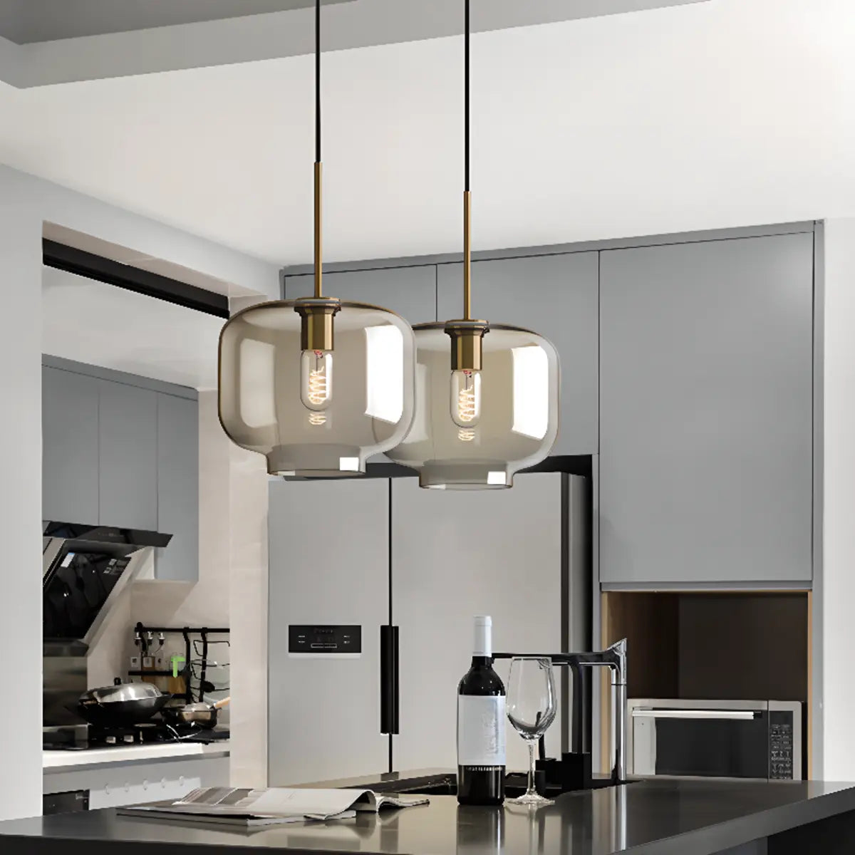 This hanging lamp stands out with its stylish gold-toned glass lampshade, creating an elegant and warm space atmosphere. Its round drum design not only highlights the simple elegance of modern style, but also shows a crystal clear beauty in the refraction of light, adding a design highlight to your kitchen.