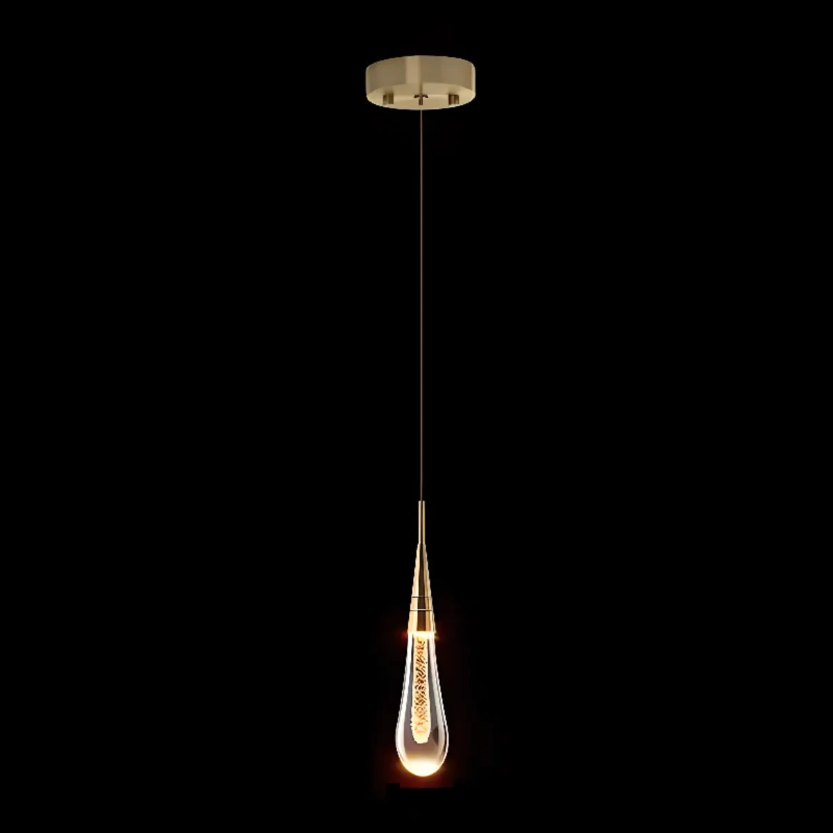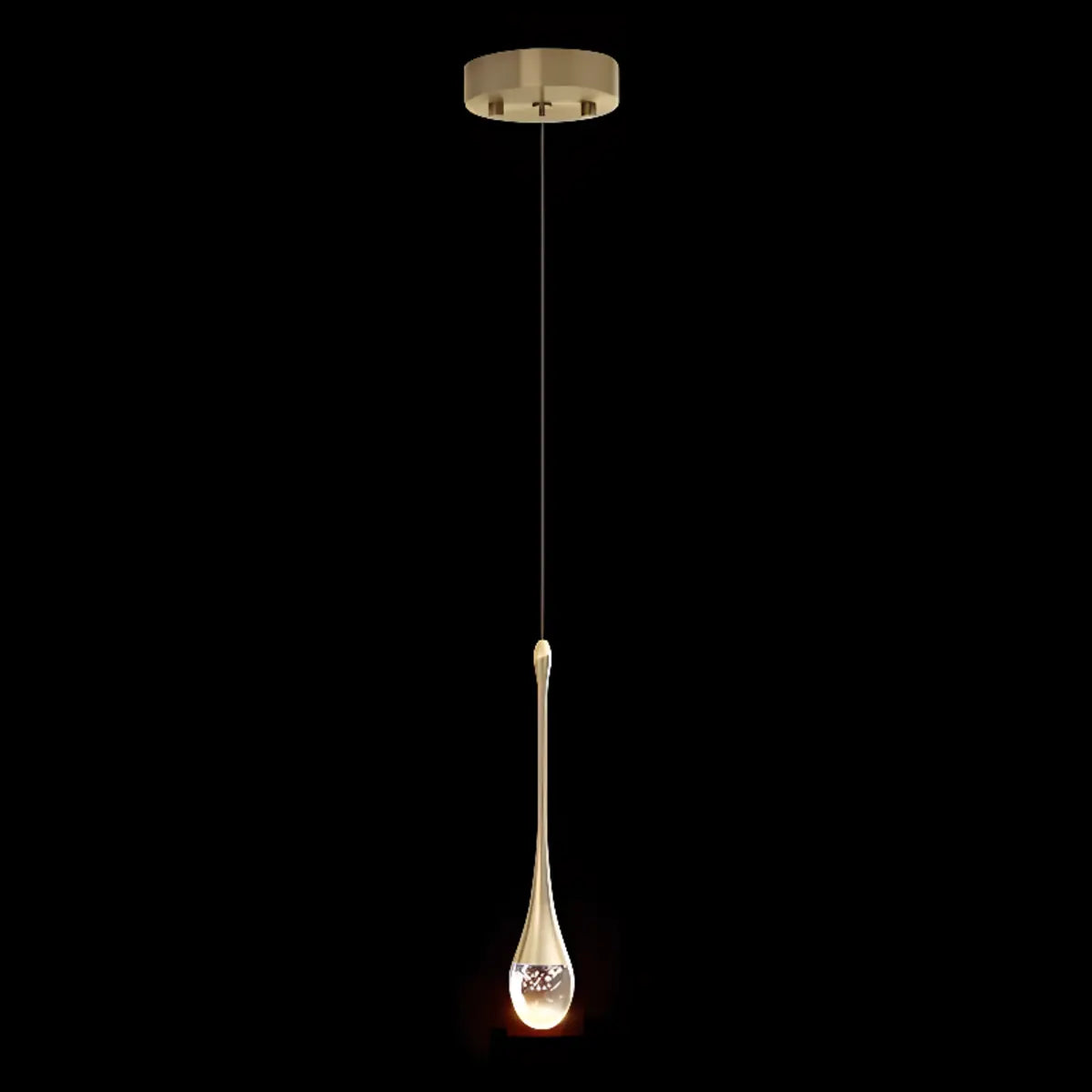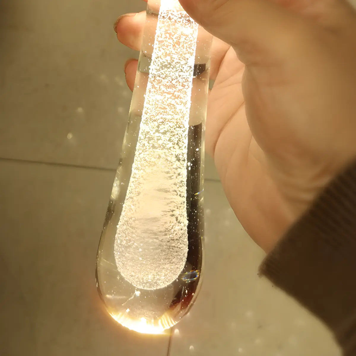 This pendant light presents a modern and simple water drop shape. The golden metal elements and the crystal clear crystal are perfectly combined, just like a work of art suspended in the air. It is not only a lighting tool, but also a decorative boutique that enhances the interior taste. It can add a sense of layering and fashion to the space through the interweaving of light and shadow.