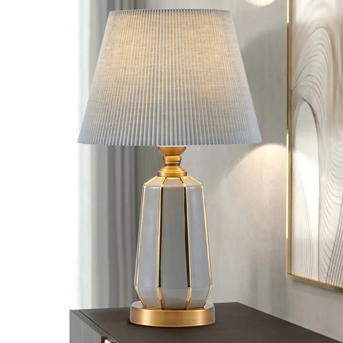 This modern table lamp is a perfect combination of fashion and functionality. Its elegant columnar design and unique crystal material make it a perfect addition to any living room, bedroom, or study. The copper tone gives the lamp a warm and noble look, and the light shines through the delicate lampshade, creating a warm and soft atmosphere. In addition, the size of more than 20 inches ensures sufficient lighting area, making it suitable for reading or working.