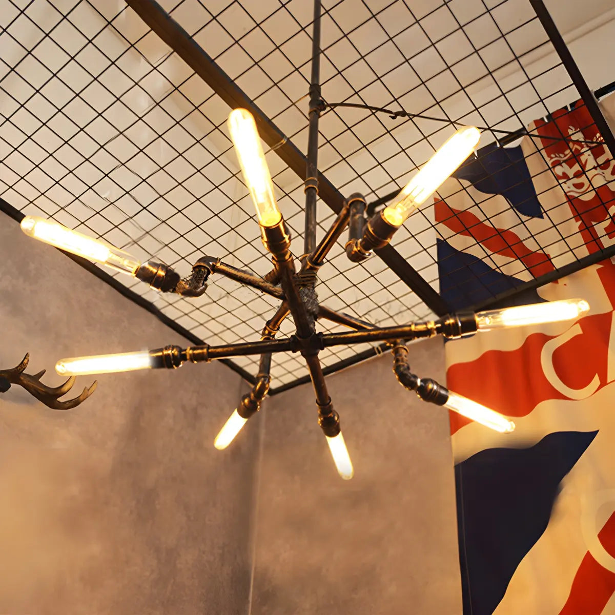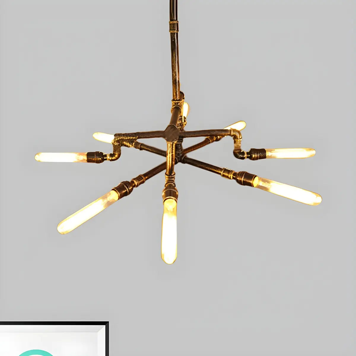 This industrial-style chandelier features a unique pipe design, creating an atmosphere that blends nostalgia with modernity, making it ideal for restaurants, bars, and home spaces with industrial-style decoration.