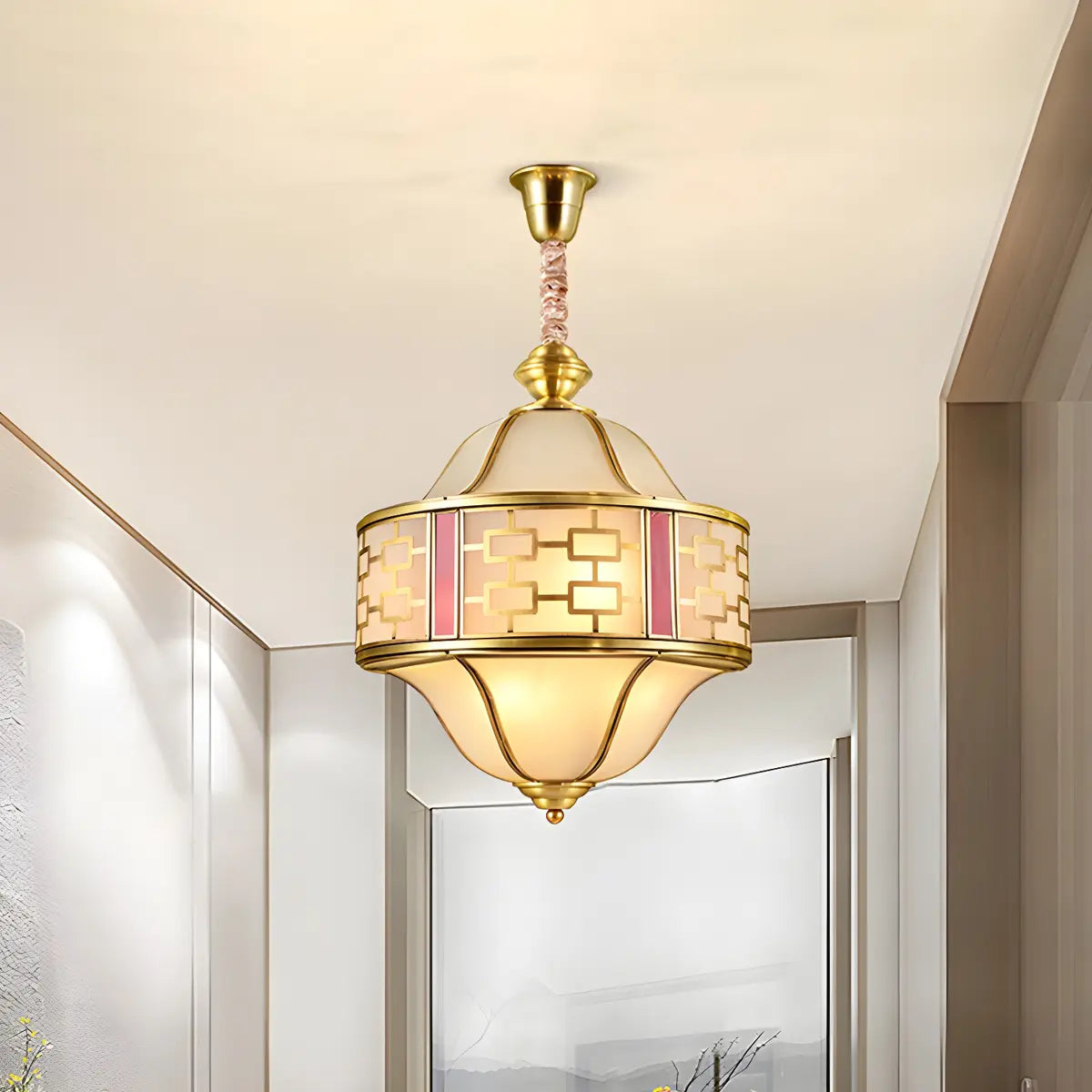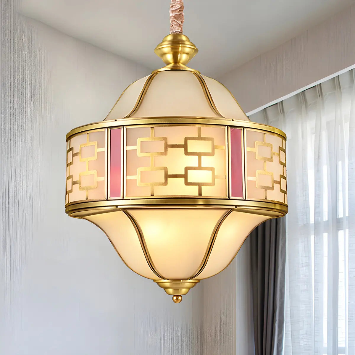 ZOWALA - Gold Double Bell Frosted Glass Porch Chandelier