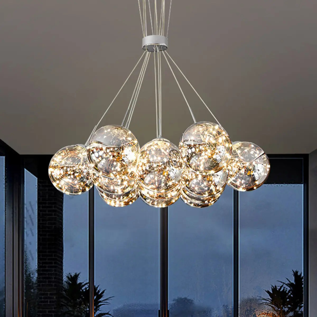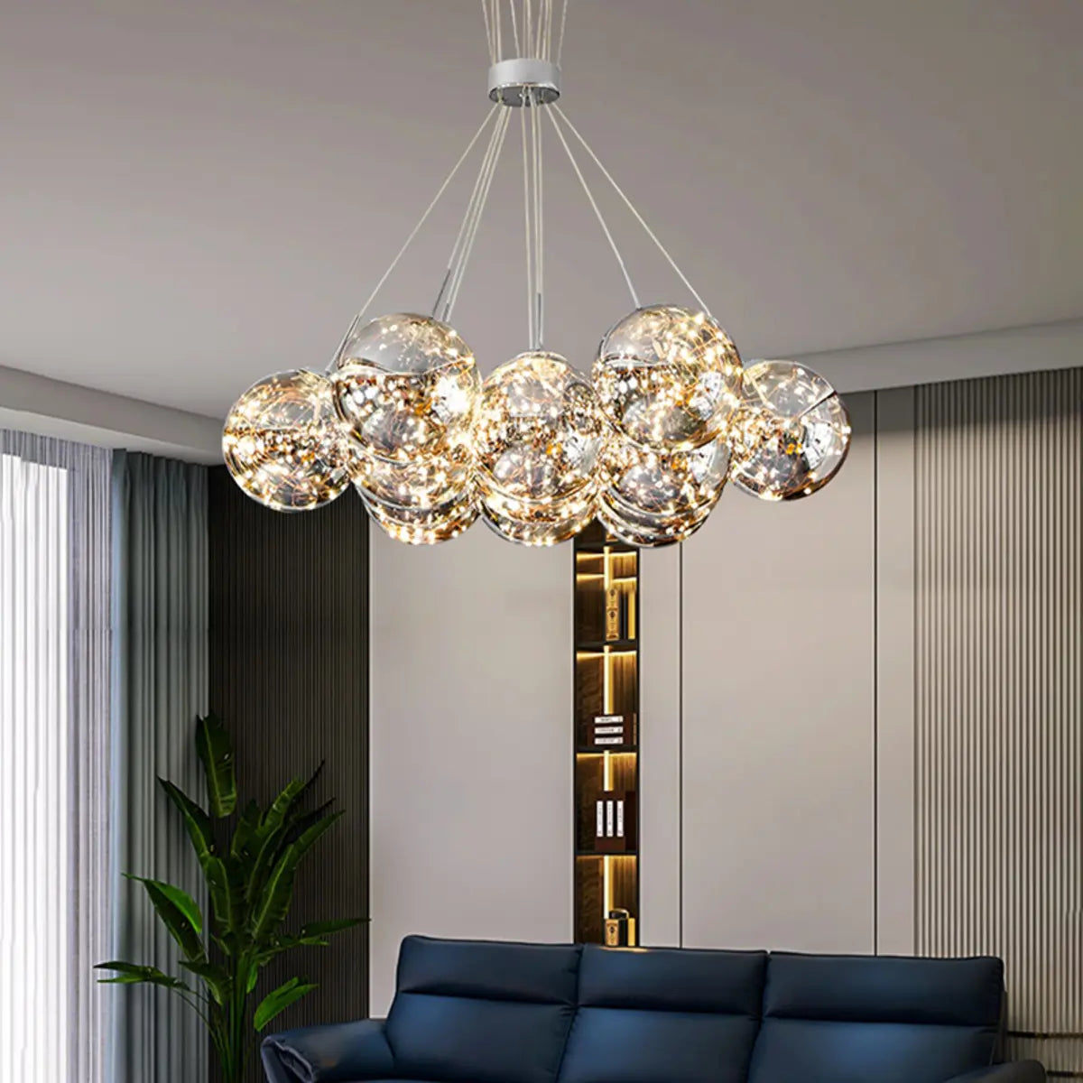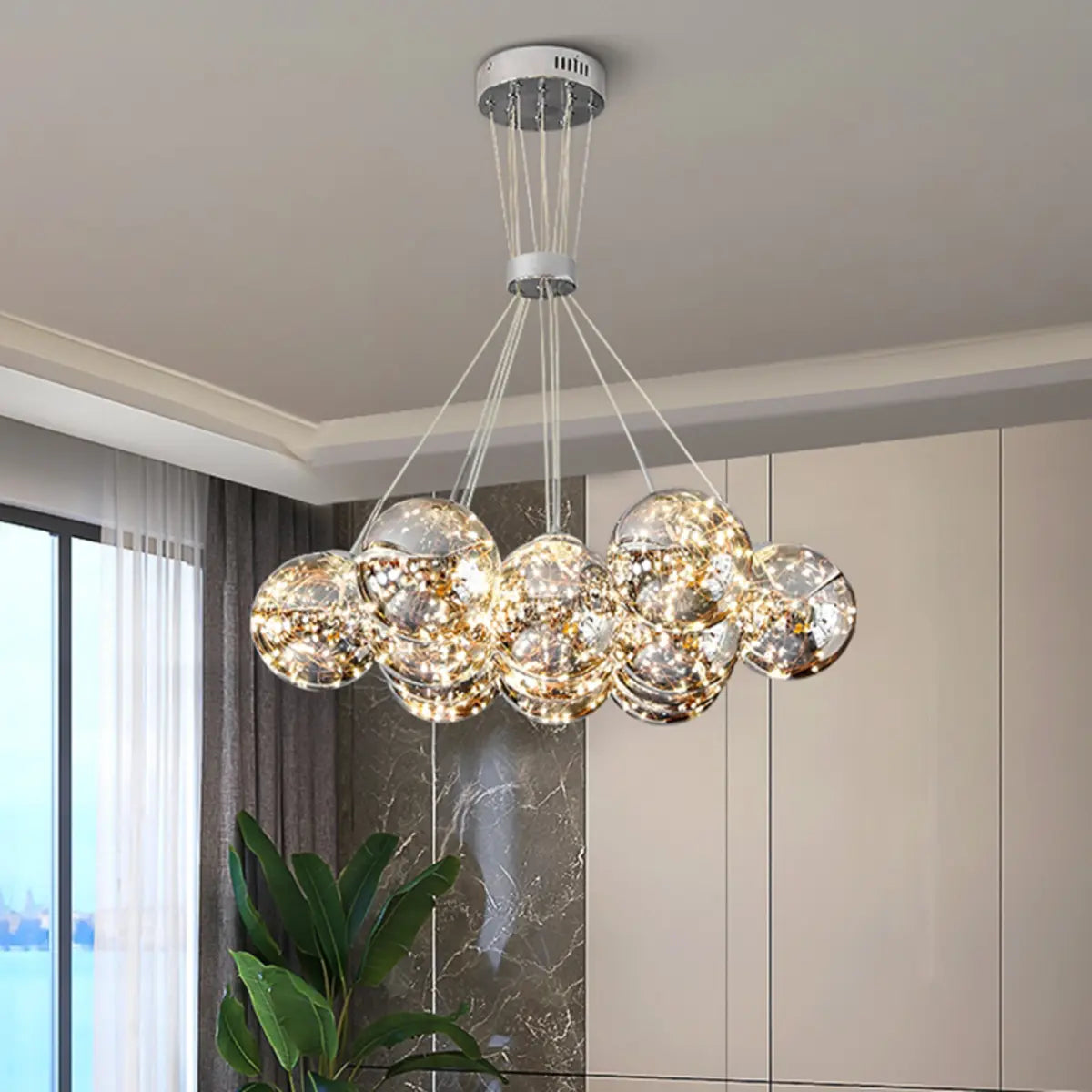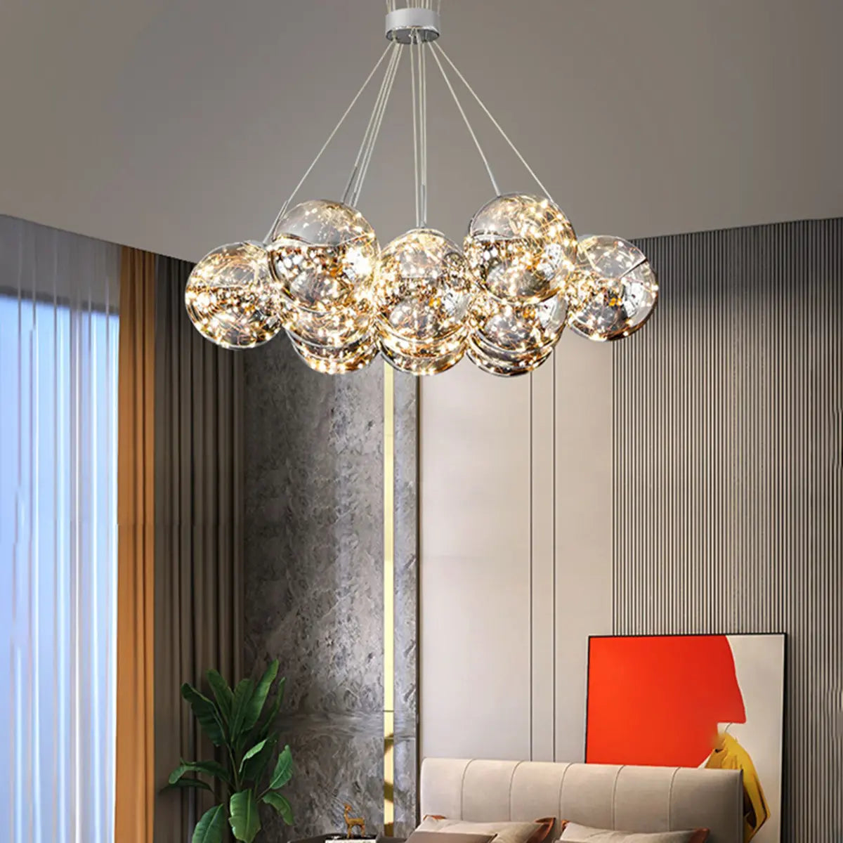 ZOWALA - Modern Mirrored Glass Smoke Grey Bubble Chandelier