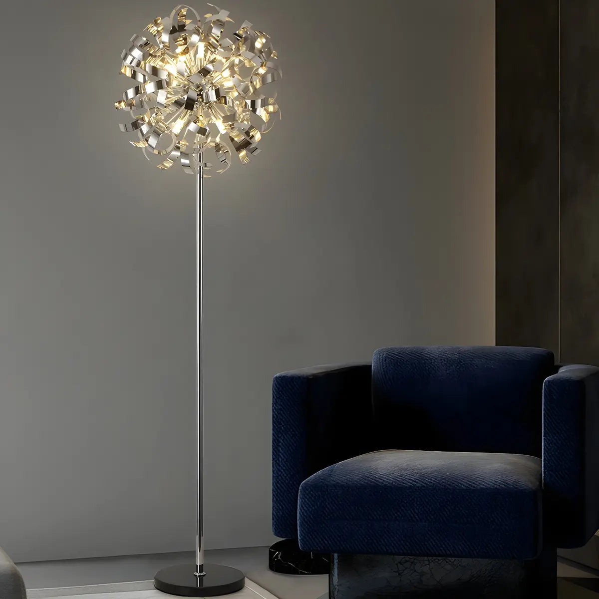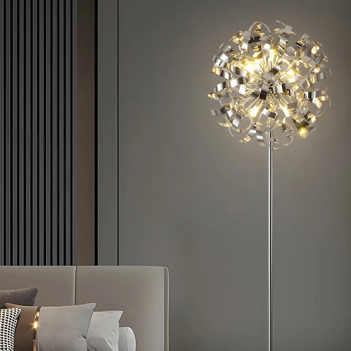 ZOWALA - Artistic Sliver Metal Ribbon Globe Floor Lamp