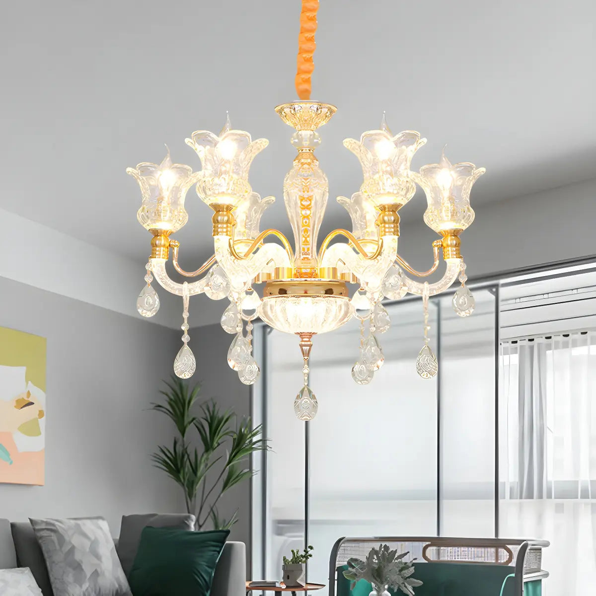 ZOWALA - Modern Blossom Glass Crystal Teardrop Chandelier