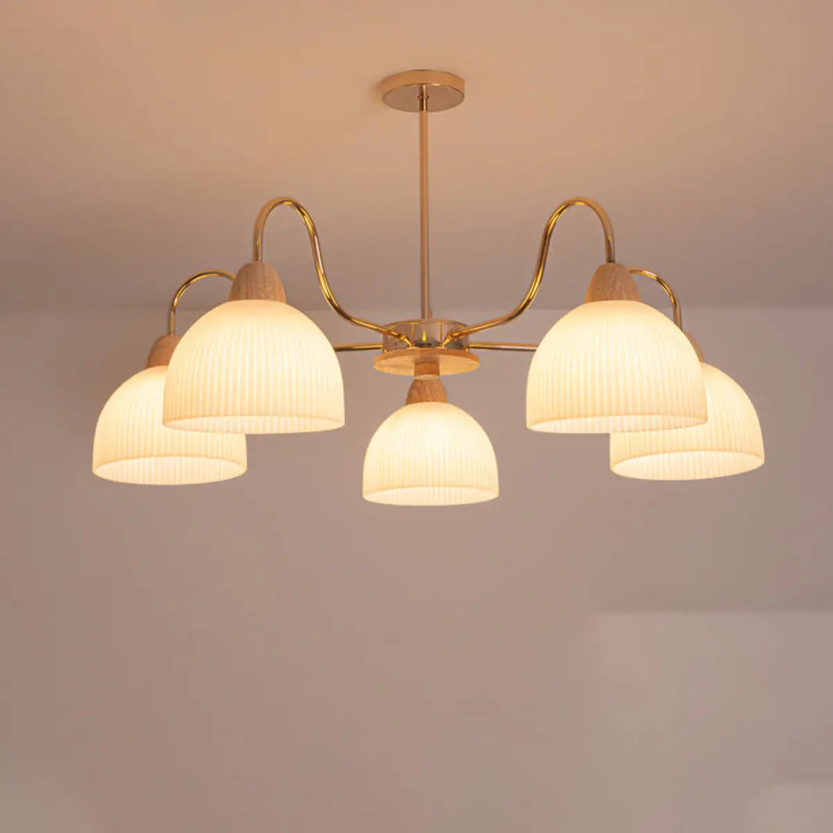 ZOWALA - Modern Gold Dome Round Milk Glass Chandelier