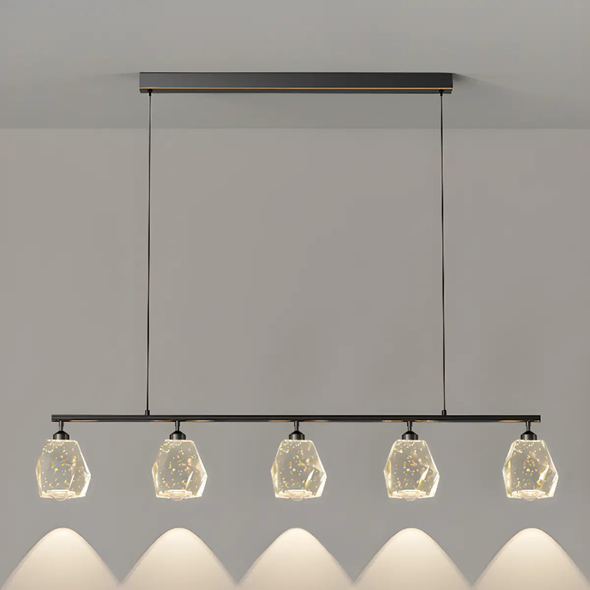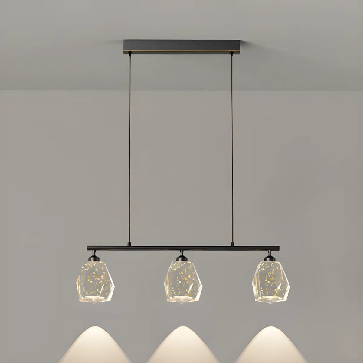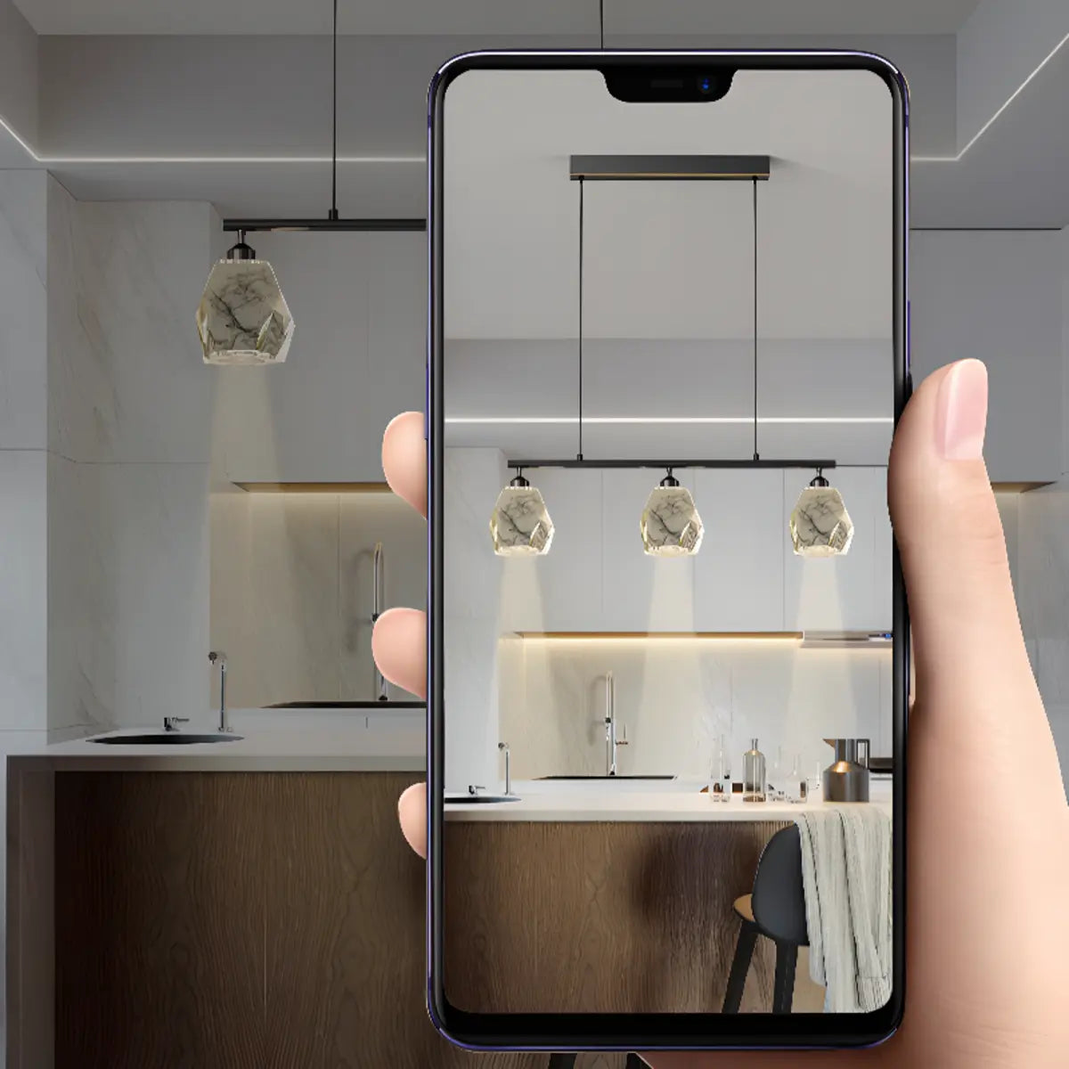 This modern geometric gold pendant lamp becomes an indispensable decoration for kitchen island with its exquisite design and practical function. Made of high-quality metal and equipped with LED bulbs, it brings even and soft light to your space.