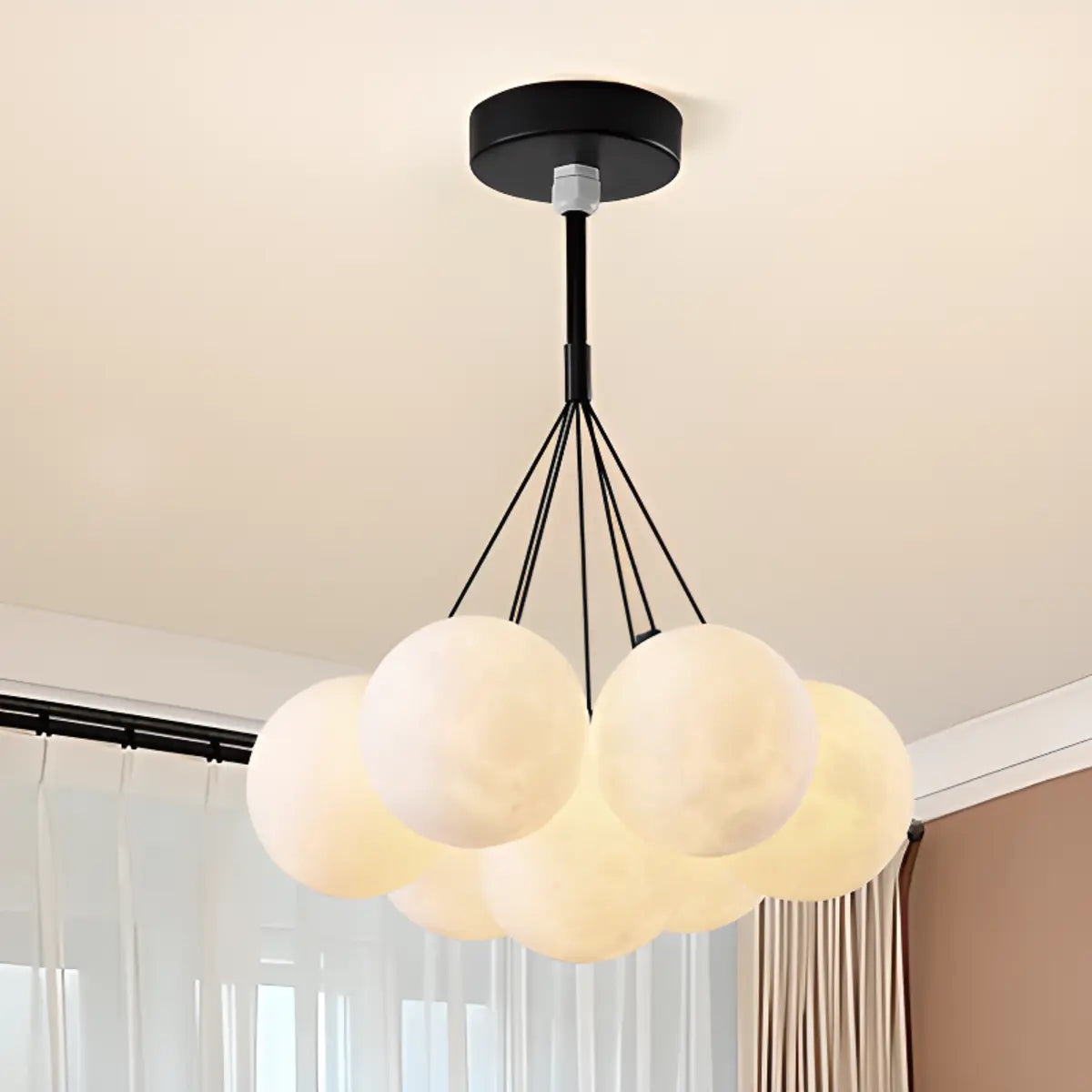 The Globe Modern Moon Chandelier, with its unique moon-shaped design, adds a modern and fantasy touch to any space. It is suitable for important places such as living rooms and dining rooms, becoming the finishing touch of the space.