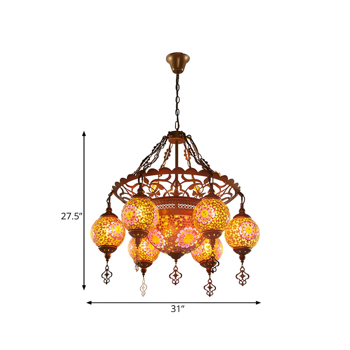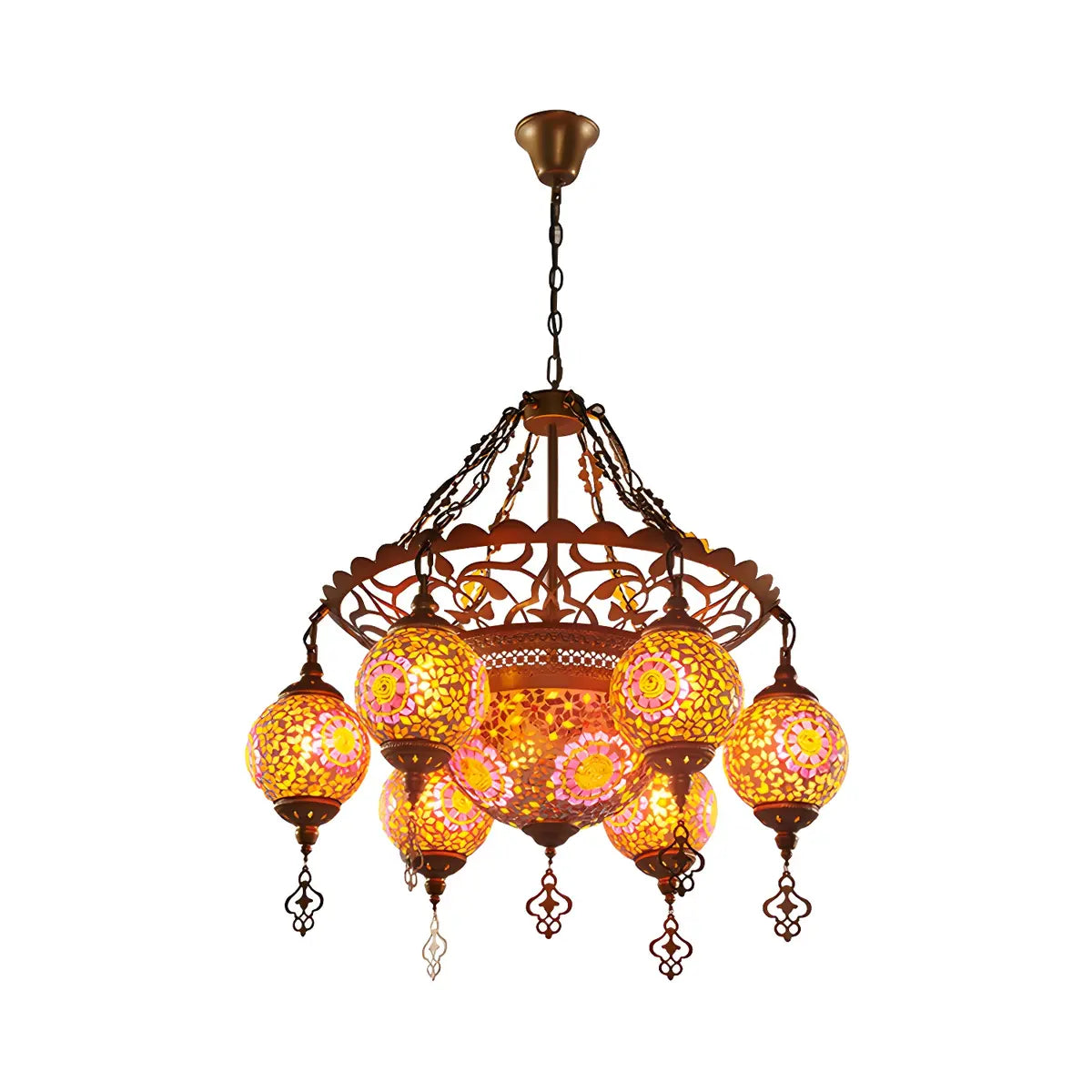 This Moroccan-style spherical chandelier is like a work of art, perfectly combining craftsmanship and practicality. It is an ideal choice for restaurants, living rooms, hotels, etc. Its unique stained glass design is reminiscent of the exotic Moroccan style.