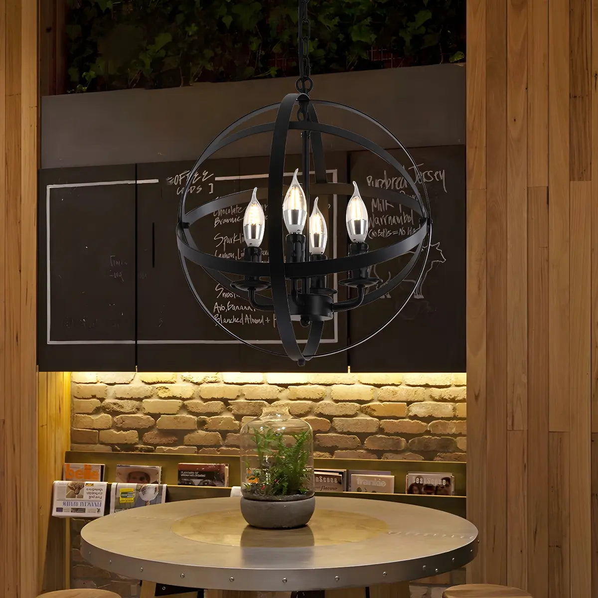 ZOWALA - Black Metal Sphere Chain Candle Chandelier