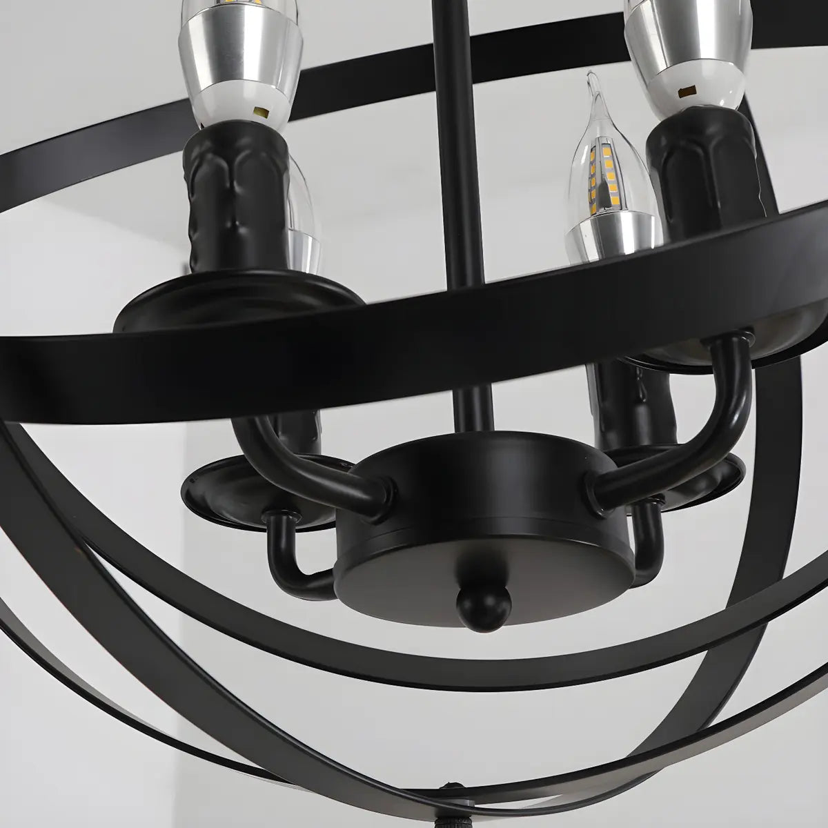 This black metal spherical chandelier combines modern and industrial styles, bringing a stylish and generous visual effect. It is very suitable for decoration in home or commercial spaces, adding a unique personality to the room.