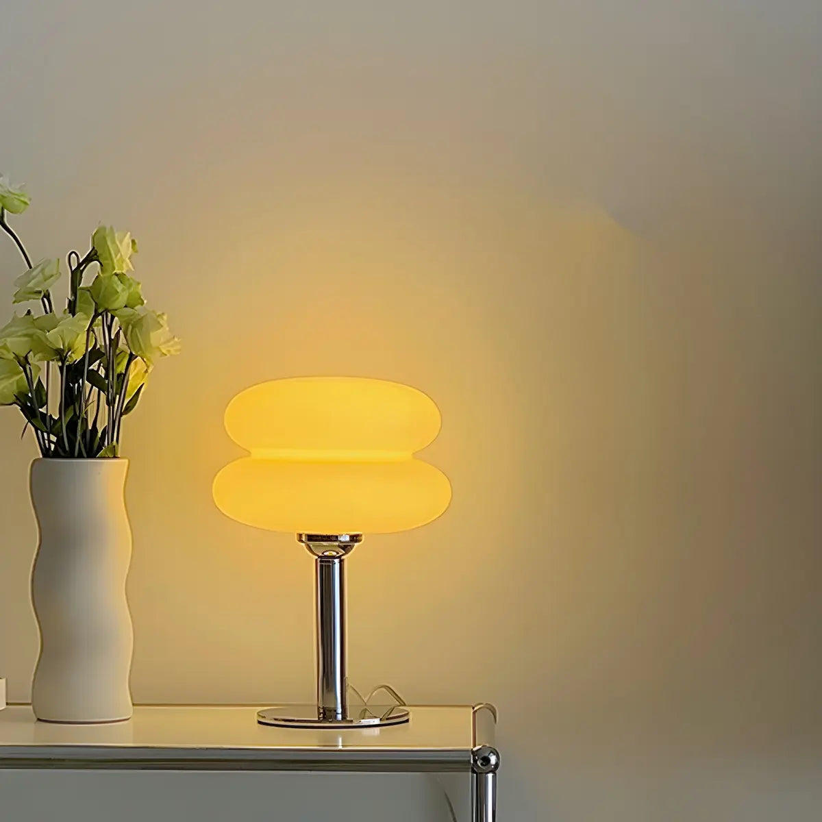 Combining a modern design with an elegant glass shade, this lamp is perfect for homes that seek a sleek, minimalist feel.