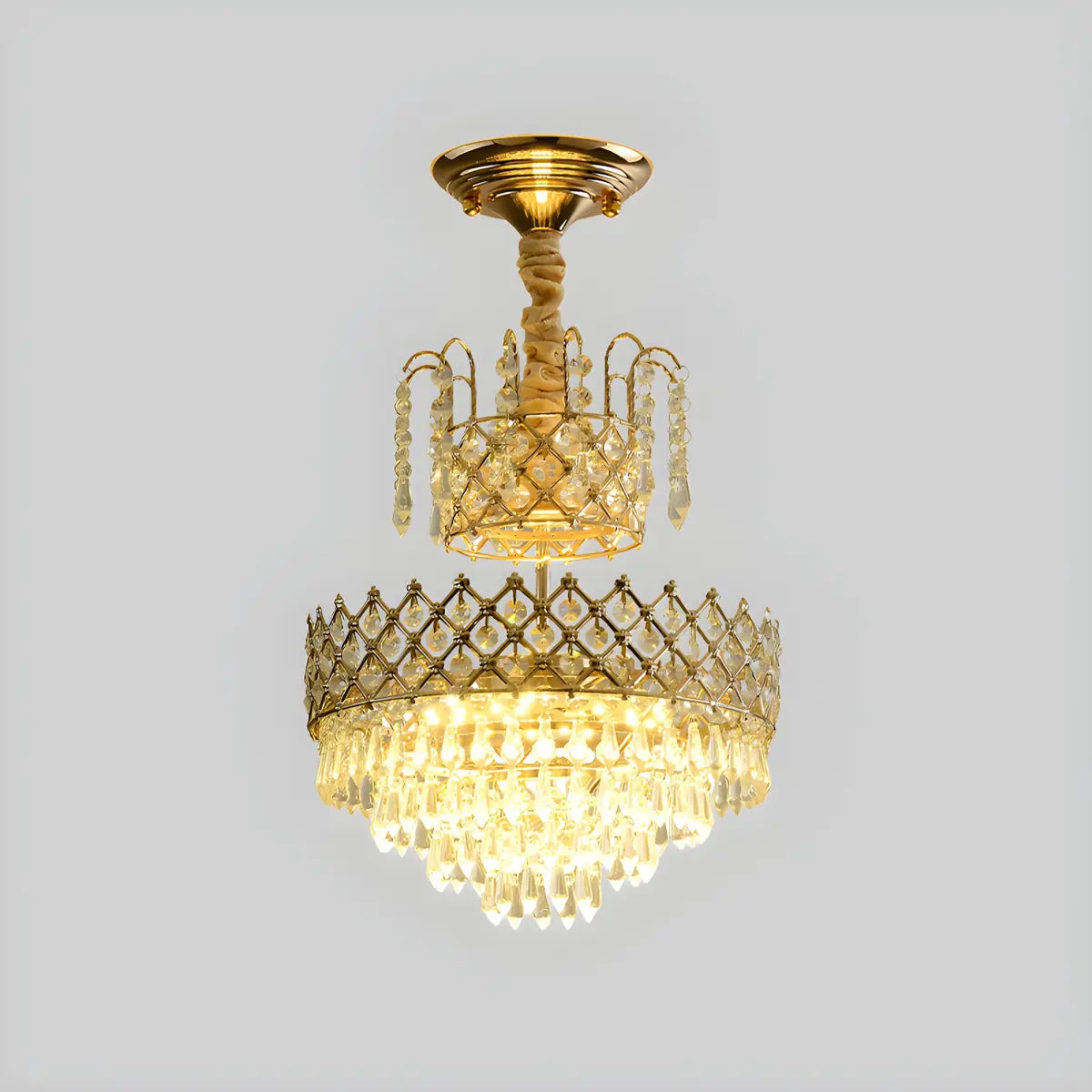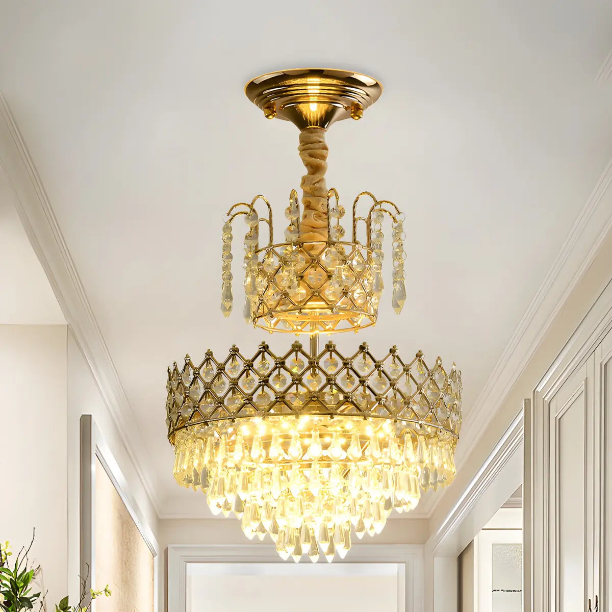 ZOWALA - Traditional Mini 2 Tiers Gold Crystal Chandelier