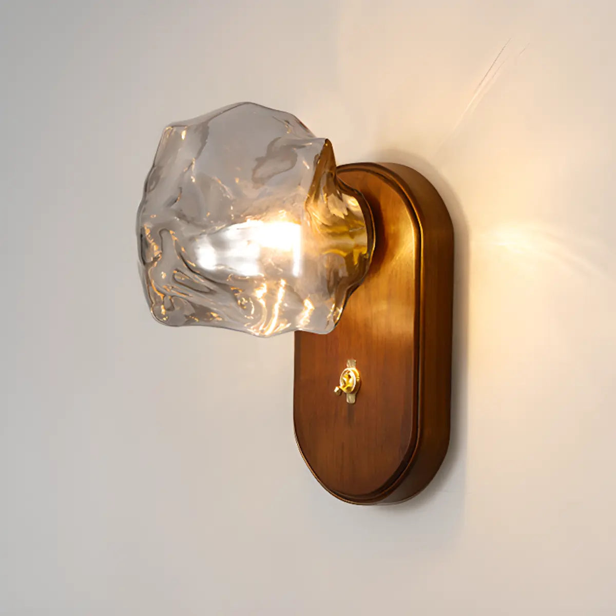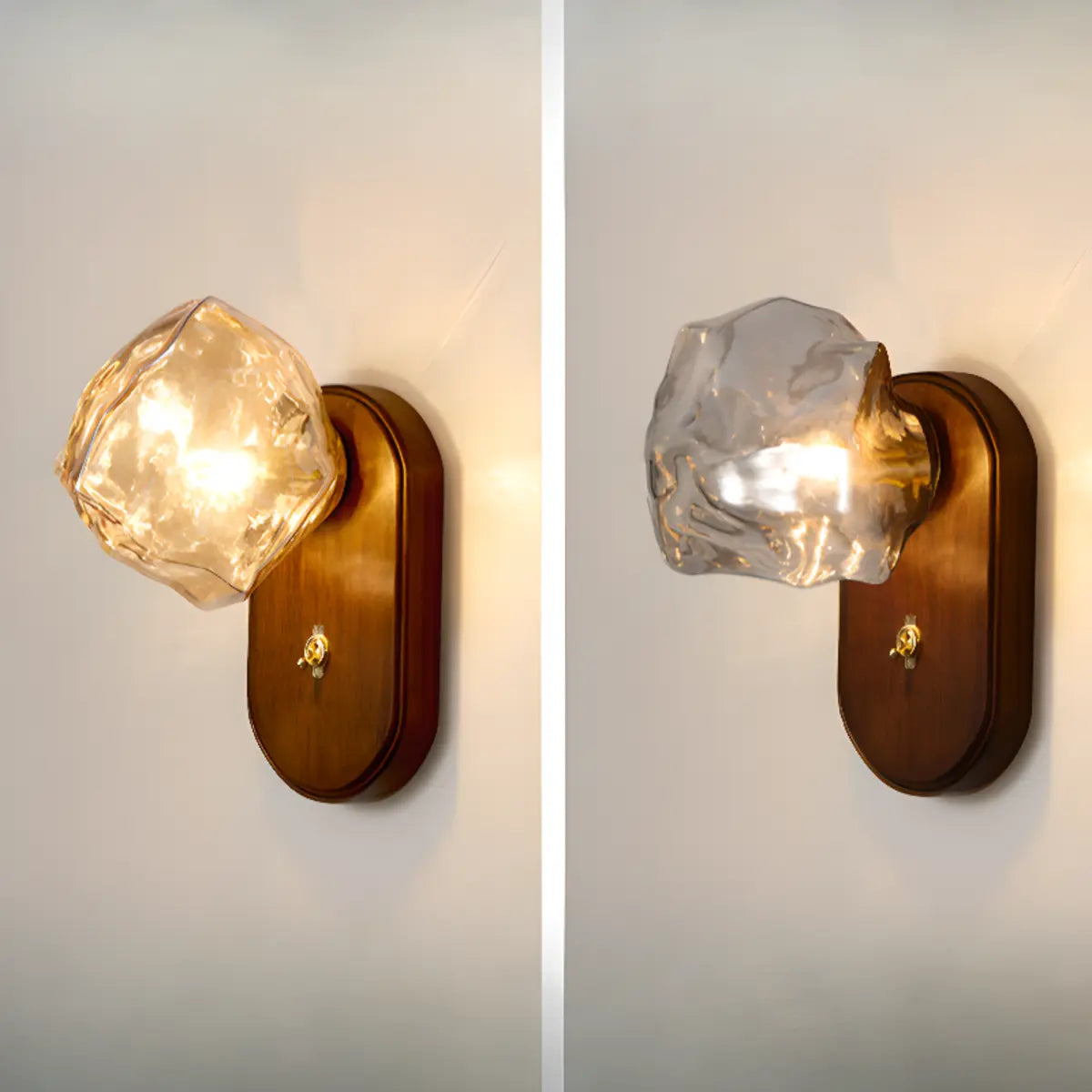 ZOWALA - Trendy Brown Wood Amber Glass Wall Light