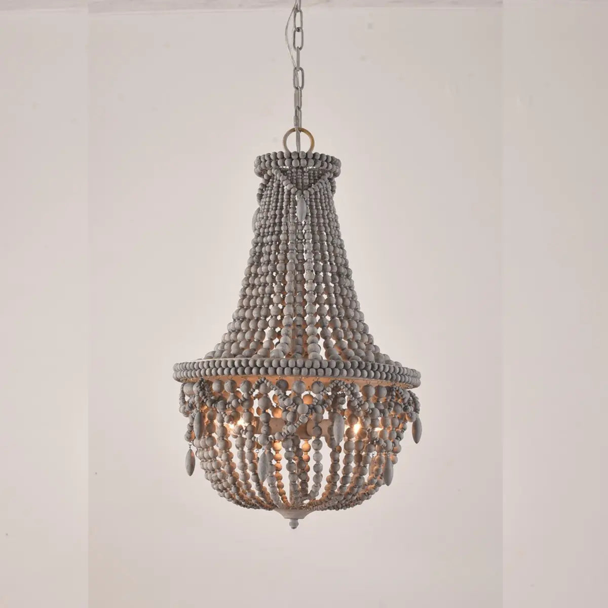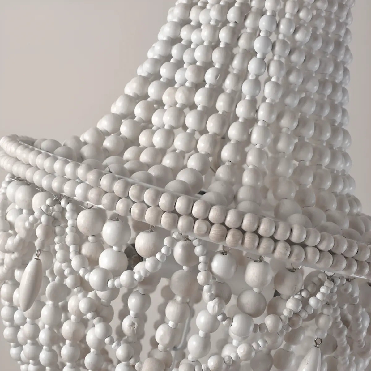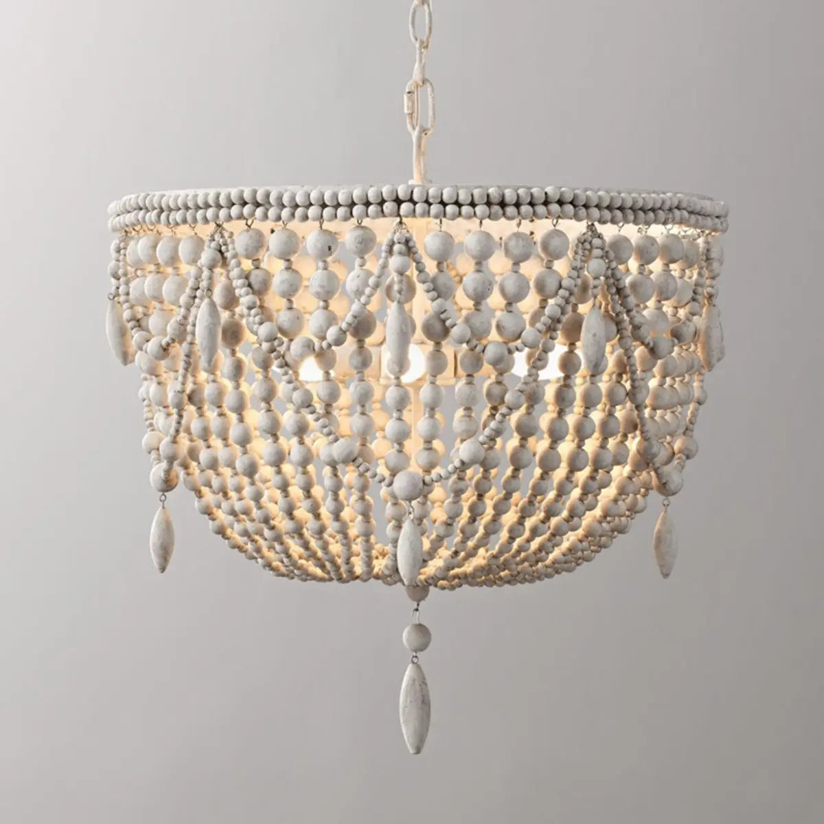 ZOWALA - Distressed White Solid Wood Beaded Chandelier
