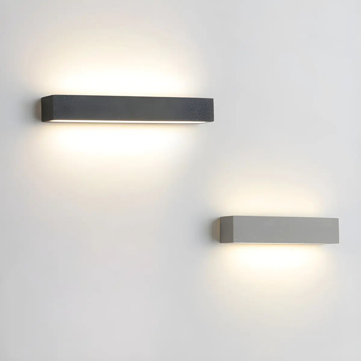 Designed for outdoor use, this wall lamp features a modern, minimalist style combined with a stone look, perfectly balancing functionality and decoration.
