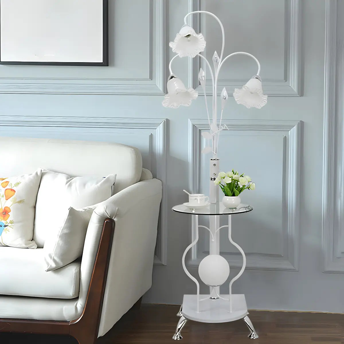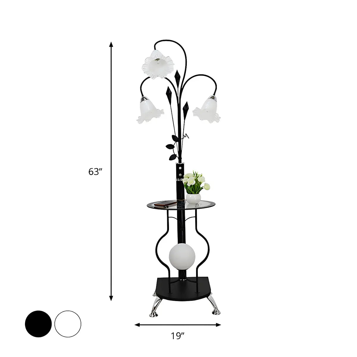 ZOWALA - 3-Light Curved White Floral Floor Lamp with Shelf