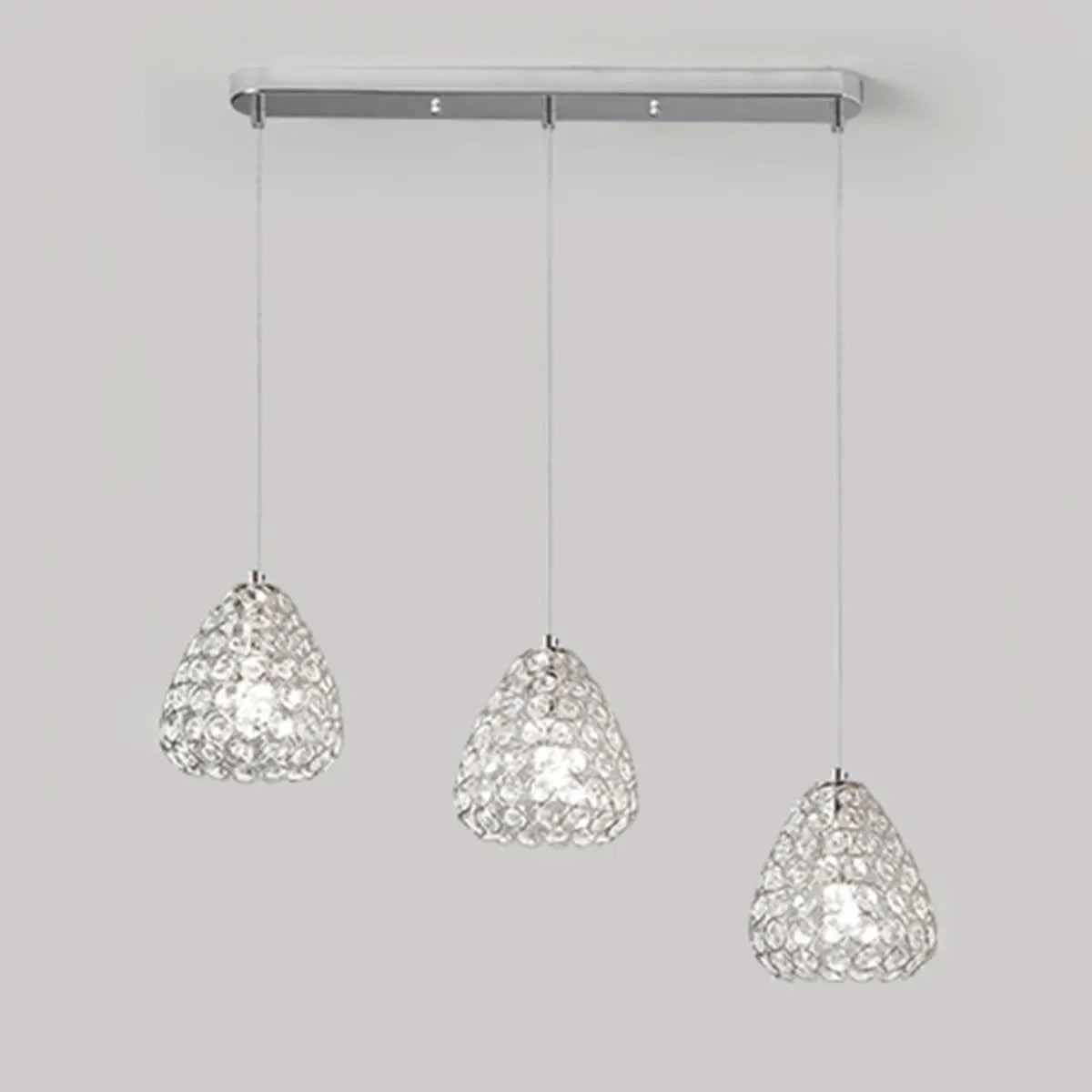 This modern chandelier catches the eye with its delicate crystal lampshade, matched with shiny chrome, hanging in your kitchen like a work of art, elegant and luxurious. Its unique geometric design gives the space a modern and dynamic feel, perfectly combining function and aesthetics, and has great decorative effect.