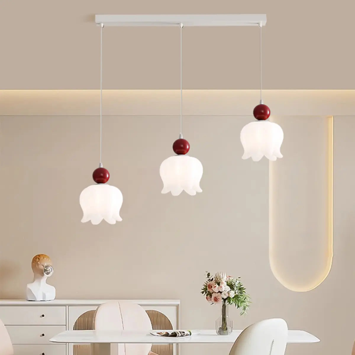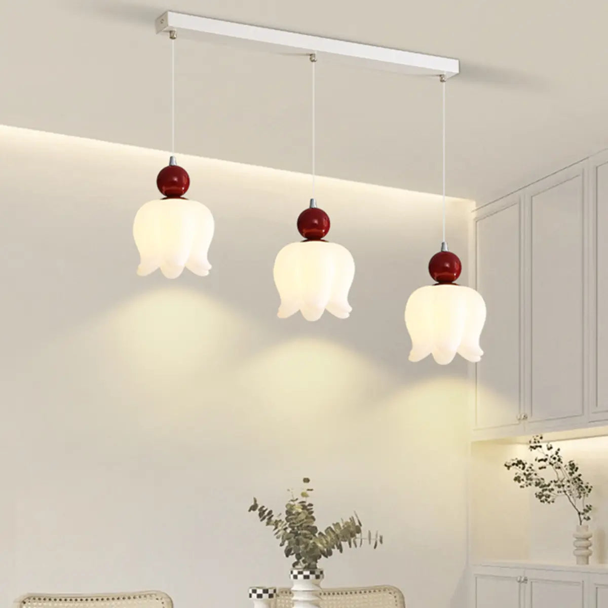ZOWALA -White Resin Flower 3-Light Red Accent Island Light