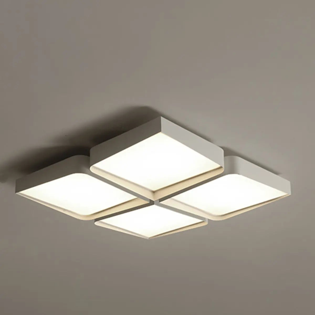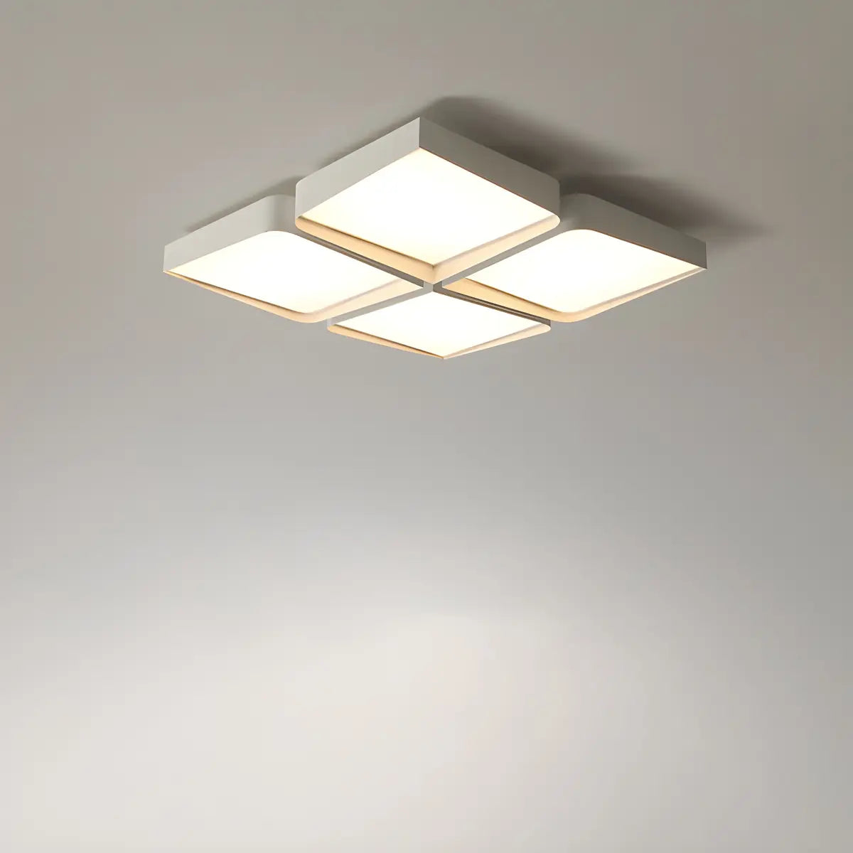 This modern square four-light ceiling lamp is like a work of art. Its simple metal lines and white acrylic lampshade are cleverly combined to form an elegant and modern visual focal point. The light is softly scattered through the acrylic material, adding a warm halo to the room, which perfectly fits any modern home style while enhancing the aesthetic value of the overall space.