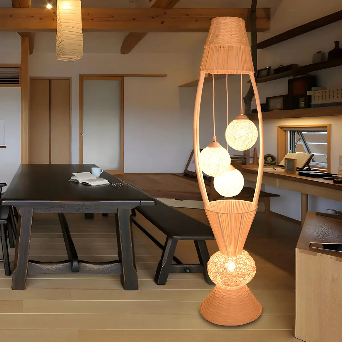 ZOWALA - 4 Lights Bamboo Rattan Fish Basket Floor Lamp
