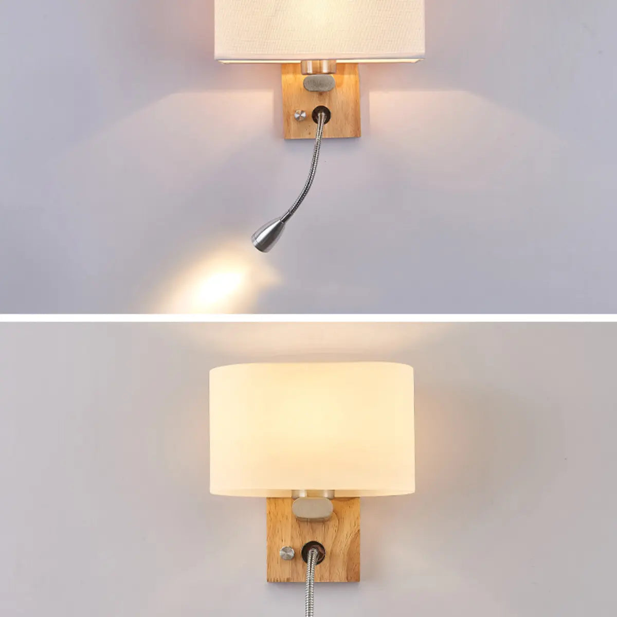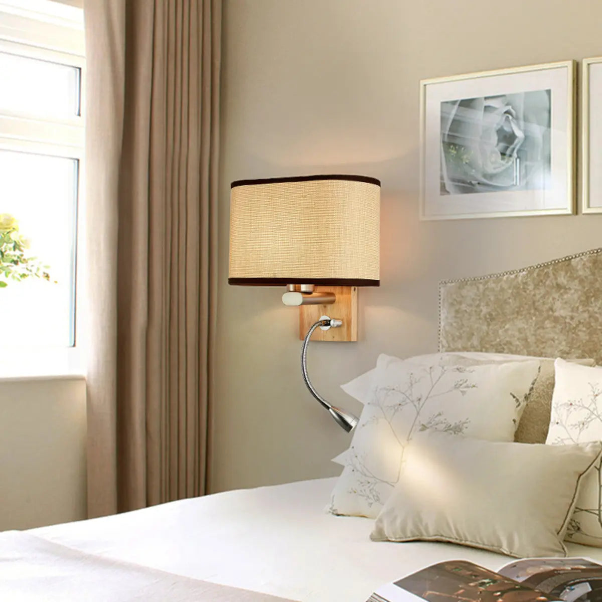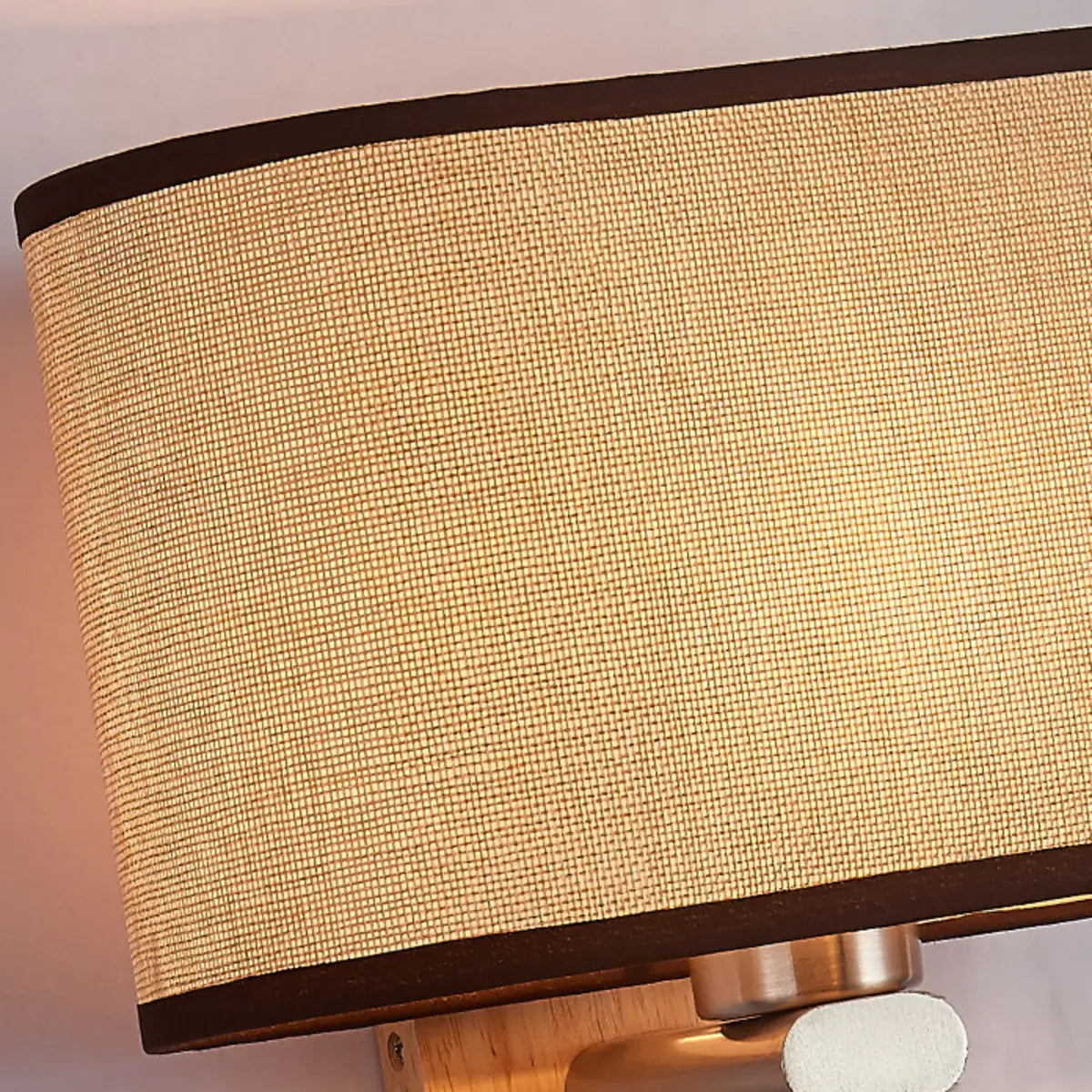 ZOWALA - Adjustable 2-Light Rustic Wood Fabric Wall Sconce