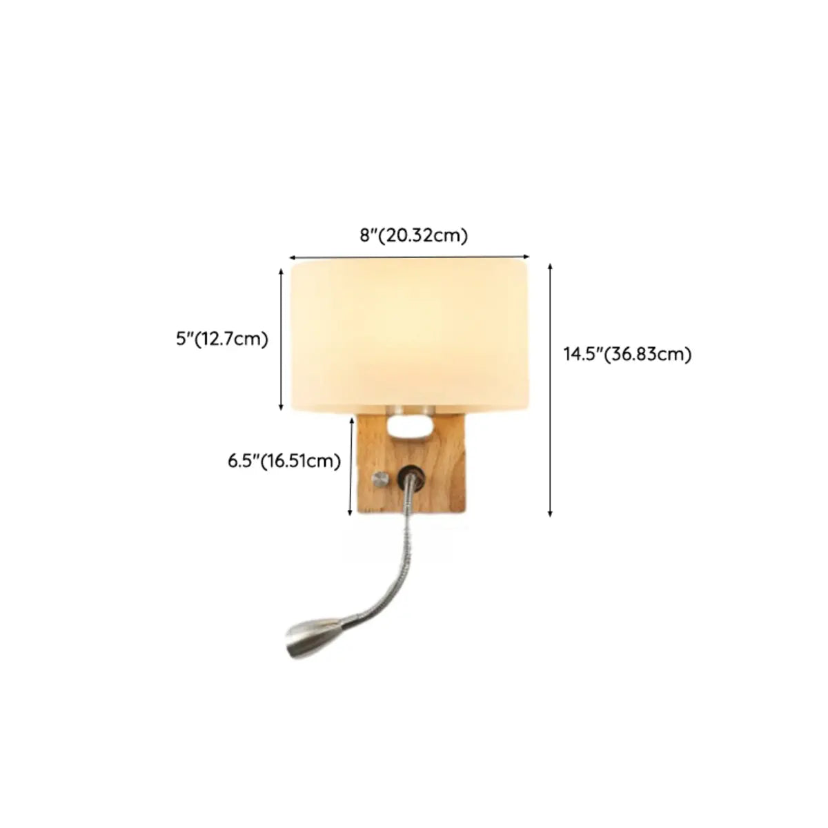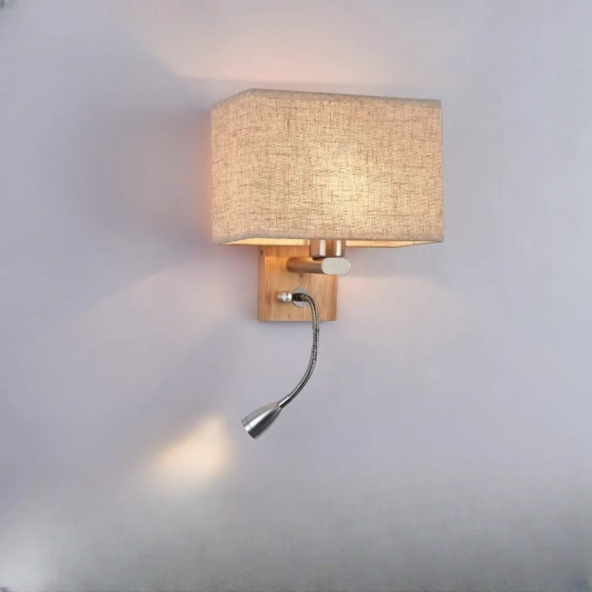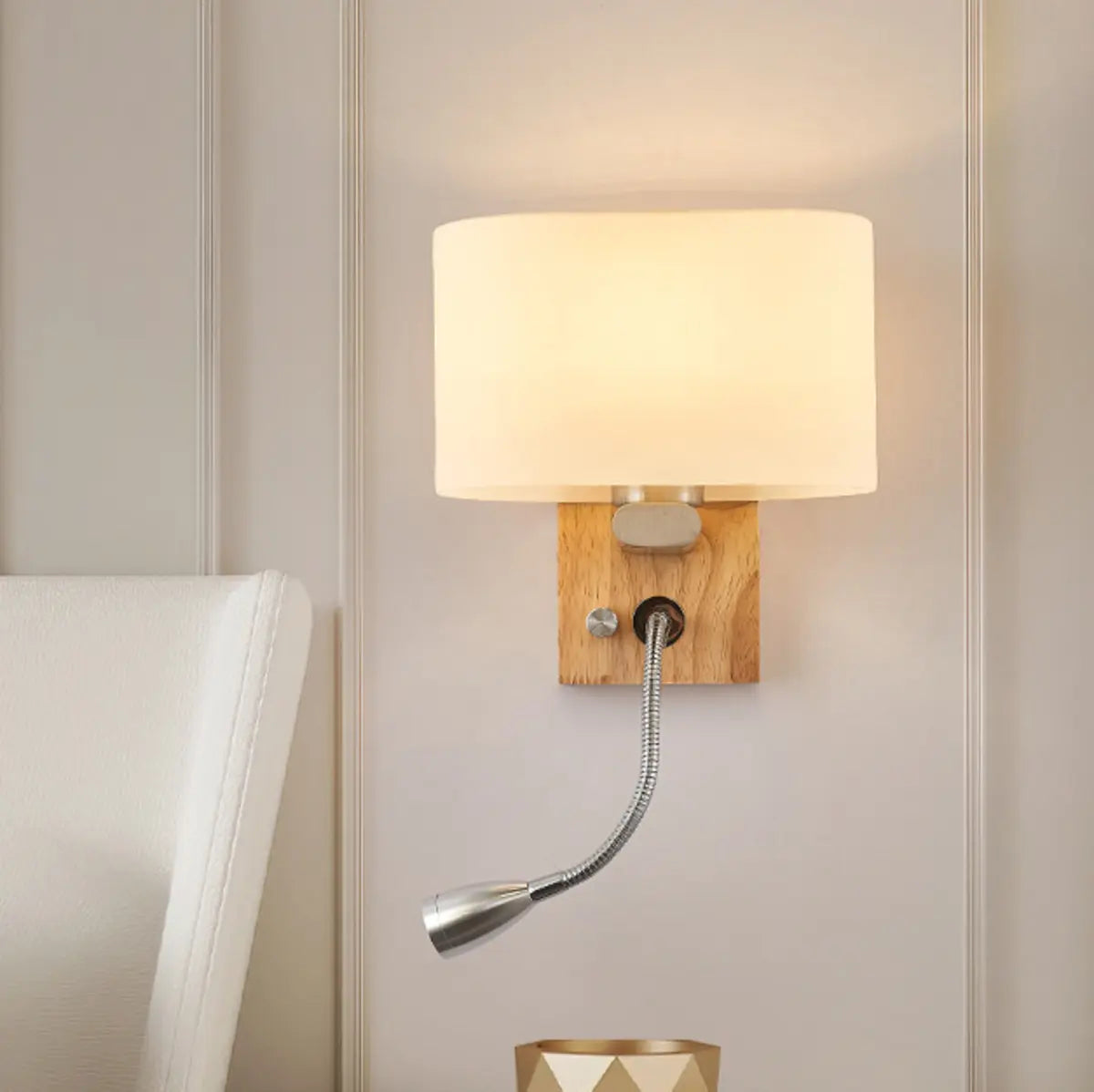 ZOWALA - Adjustable 2-Light Rustic Wood Fabric Wall Sconce