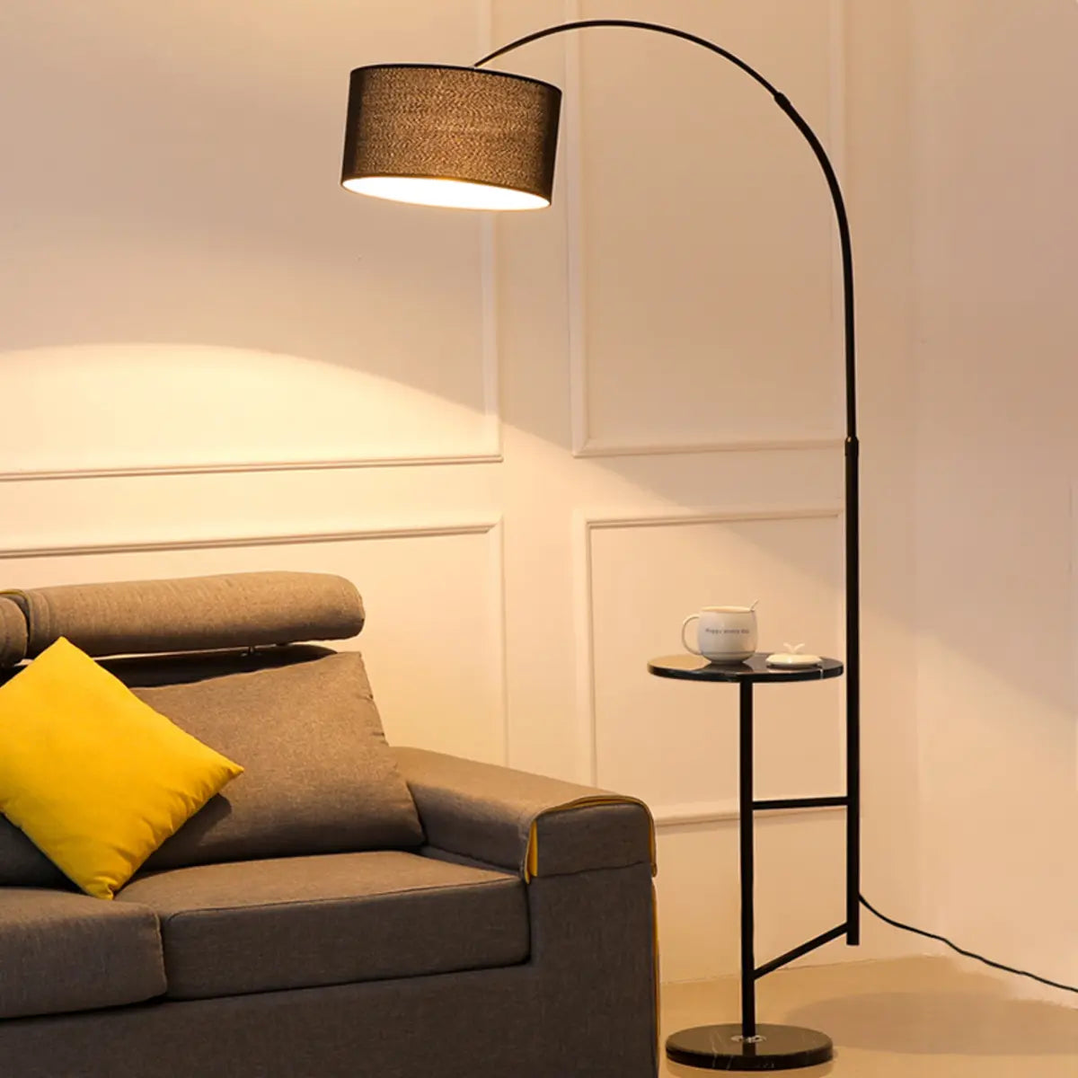 This modern curved floor lamp with a black fabric shade is the perfect blend of practicality and decoration.