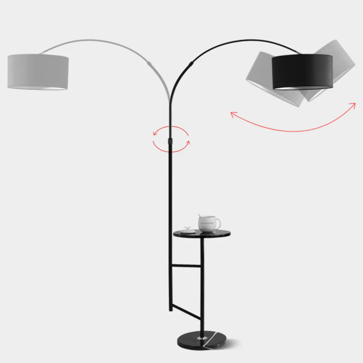 ZOWALA - Adjustable Black Fabric Drum Table Floor Lamp