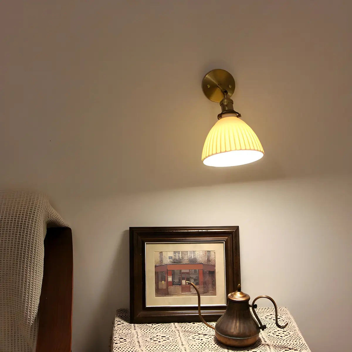 - The ceramic lampshade design makes the light soft and even, creating a warm indoor atmosphere, which is very suitable for the living room or bedroom.