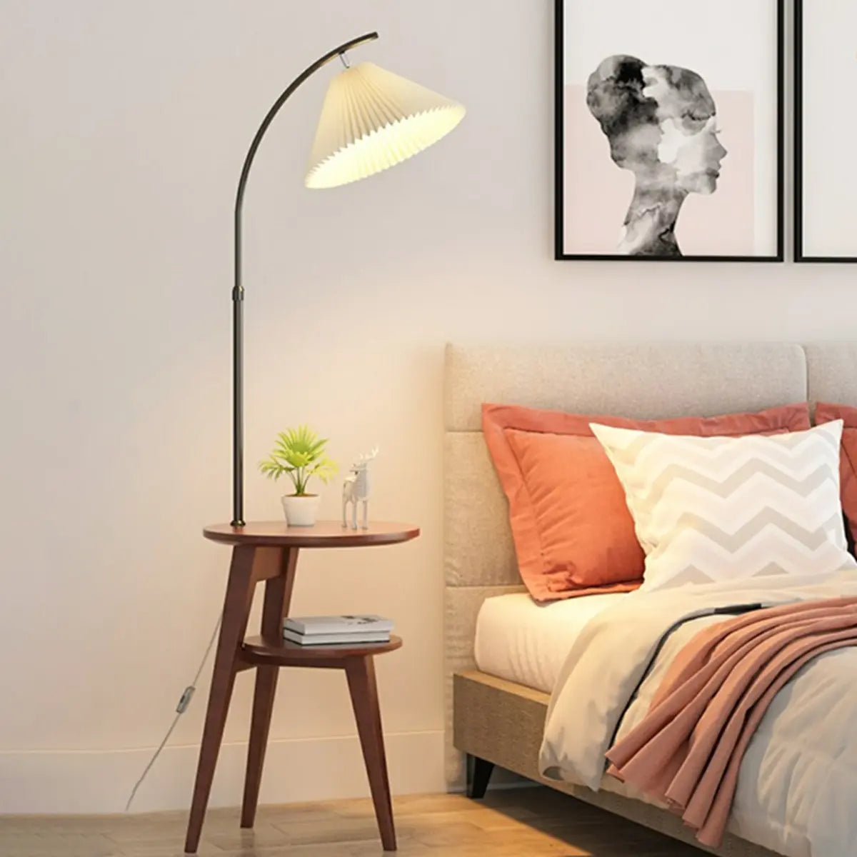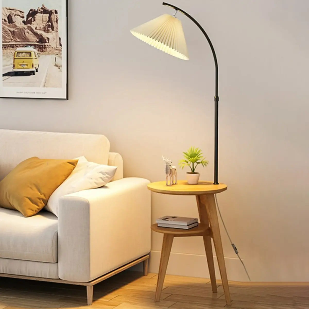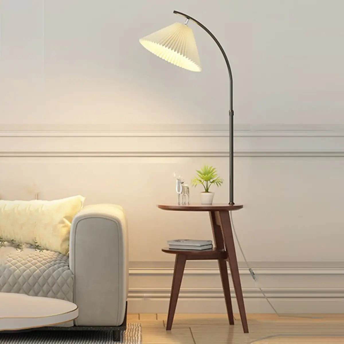 ZOWALA - Adjustable Pleated Brown Wood Table Floor Lamp