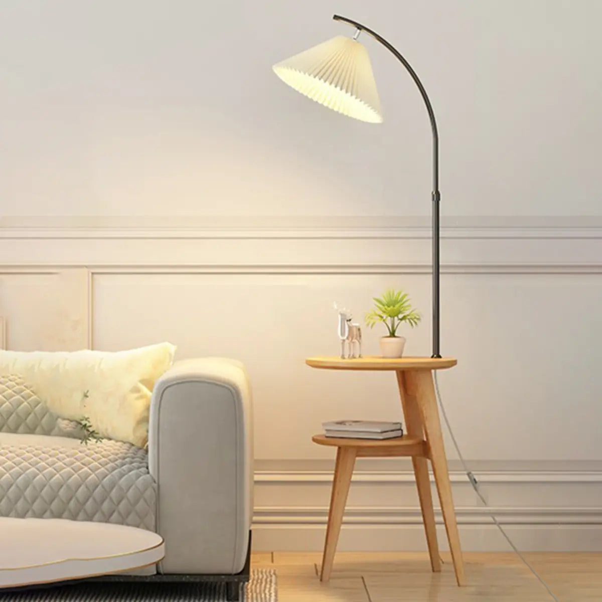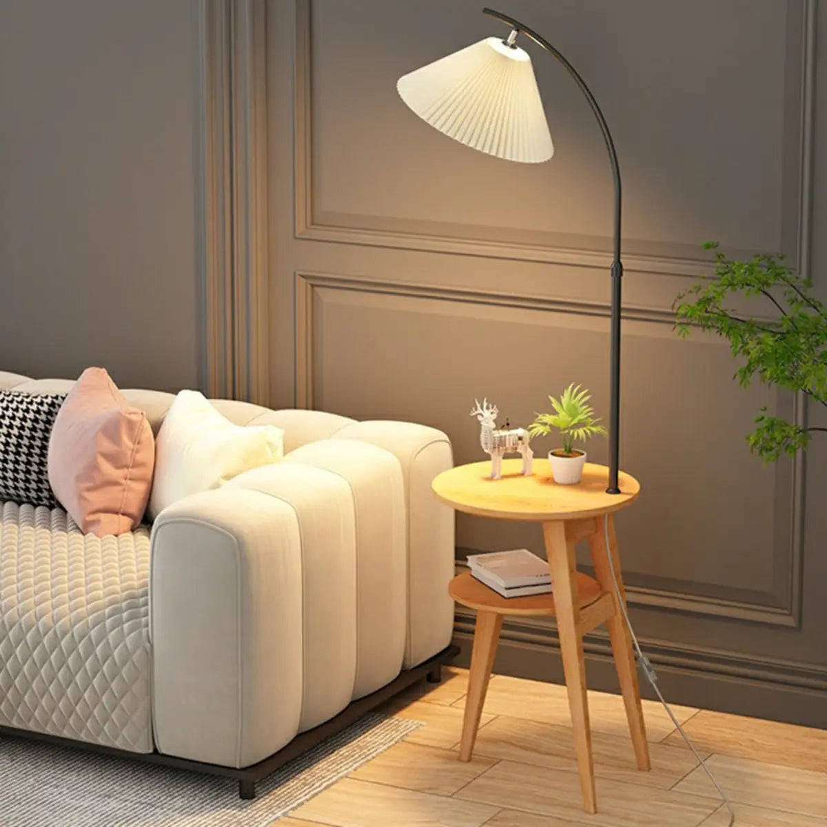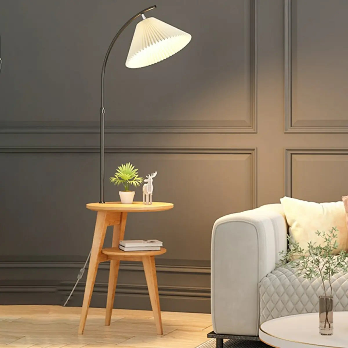 ZOWALA - Adjustable Pleated Brown Wood Table Floor Lamp