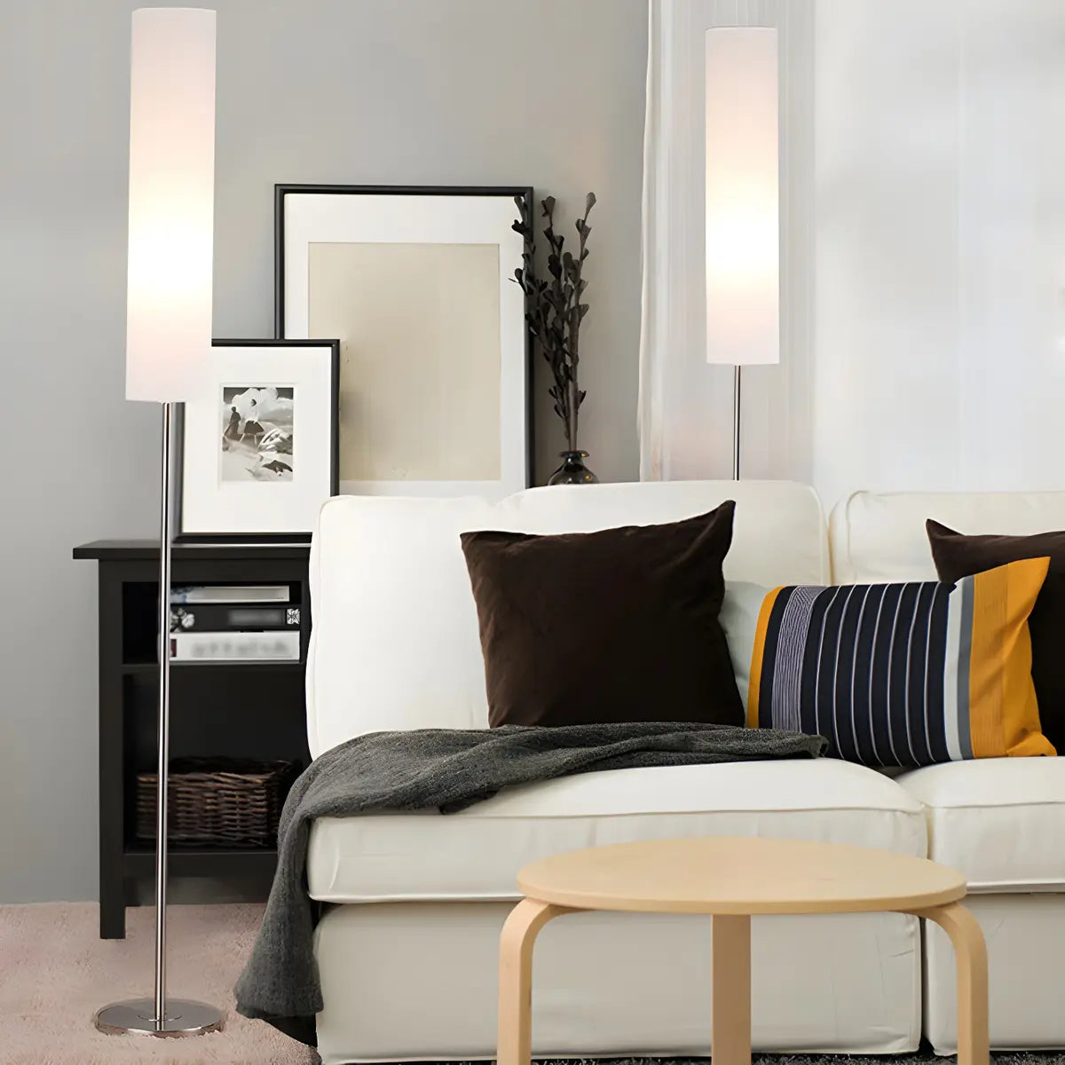 ZOWALA - Adjustable Silver Red Fabric Cylinder Floor Lamp