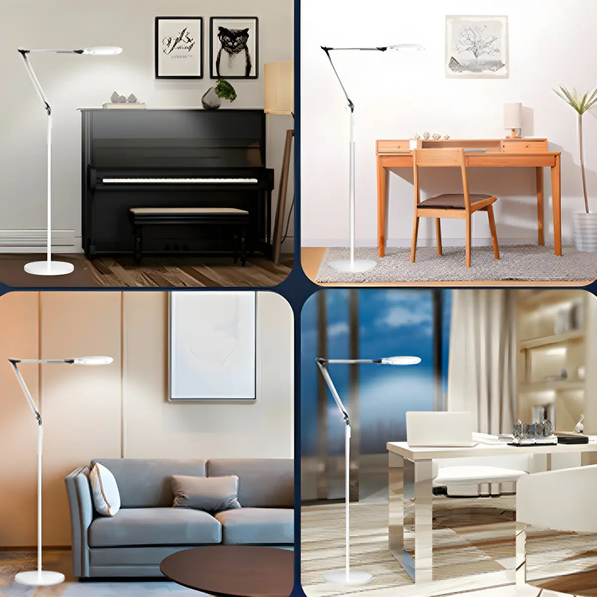 This floor lamp perfectly combines modern design and practical functions. It is suitable for placement in the living room or bedroom to enhance the overall decoration.