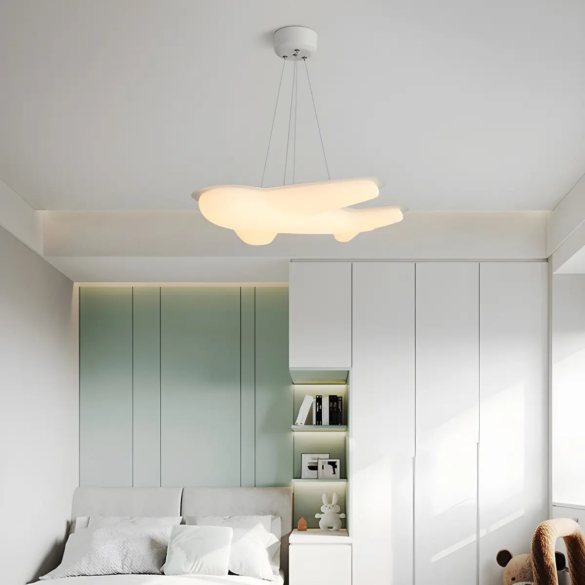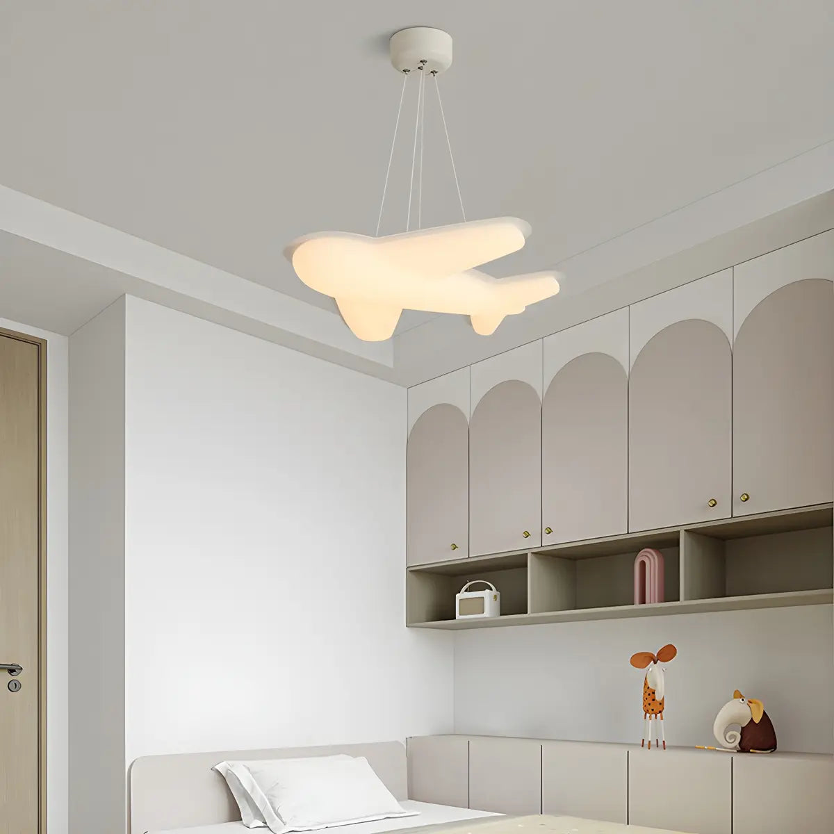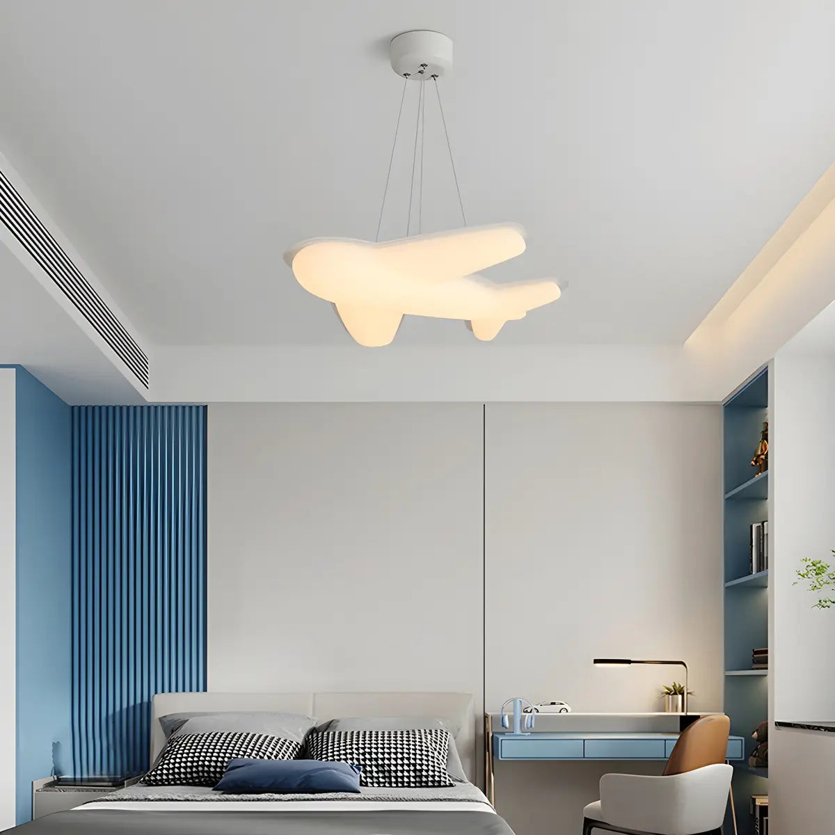 This unique geometric children's airplane pendant lamp is an ideal choice for a child's room. Its novel shape adds interest and appeal to the space.
