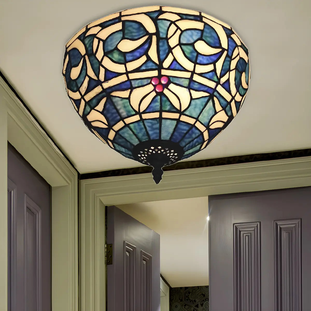 ZOWALA - Vintage Stained Glass Bowl Flush Mount Light