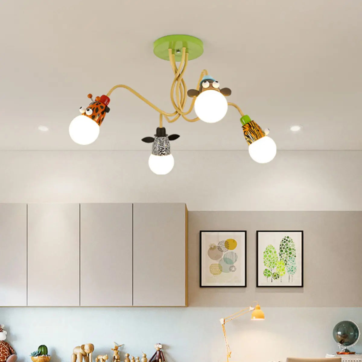 ZOWALA - Kids Animal Ball Metal 4-Light Chandelier