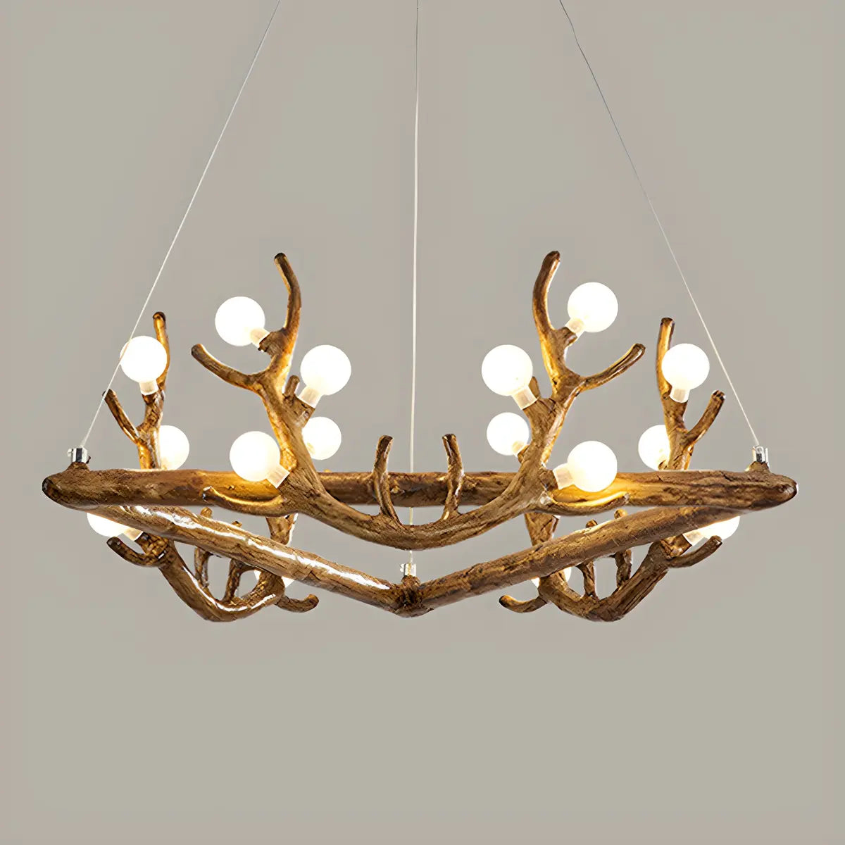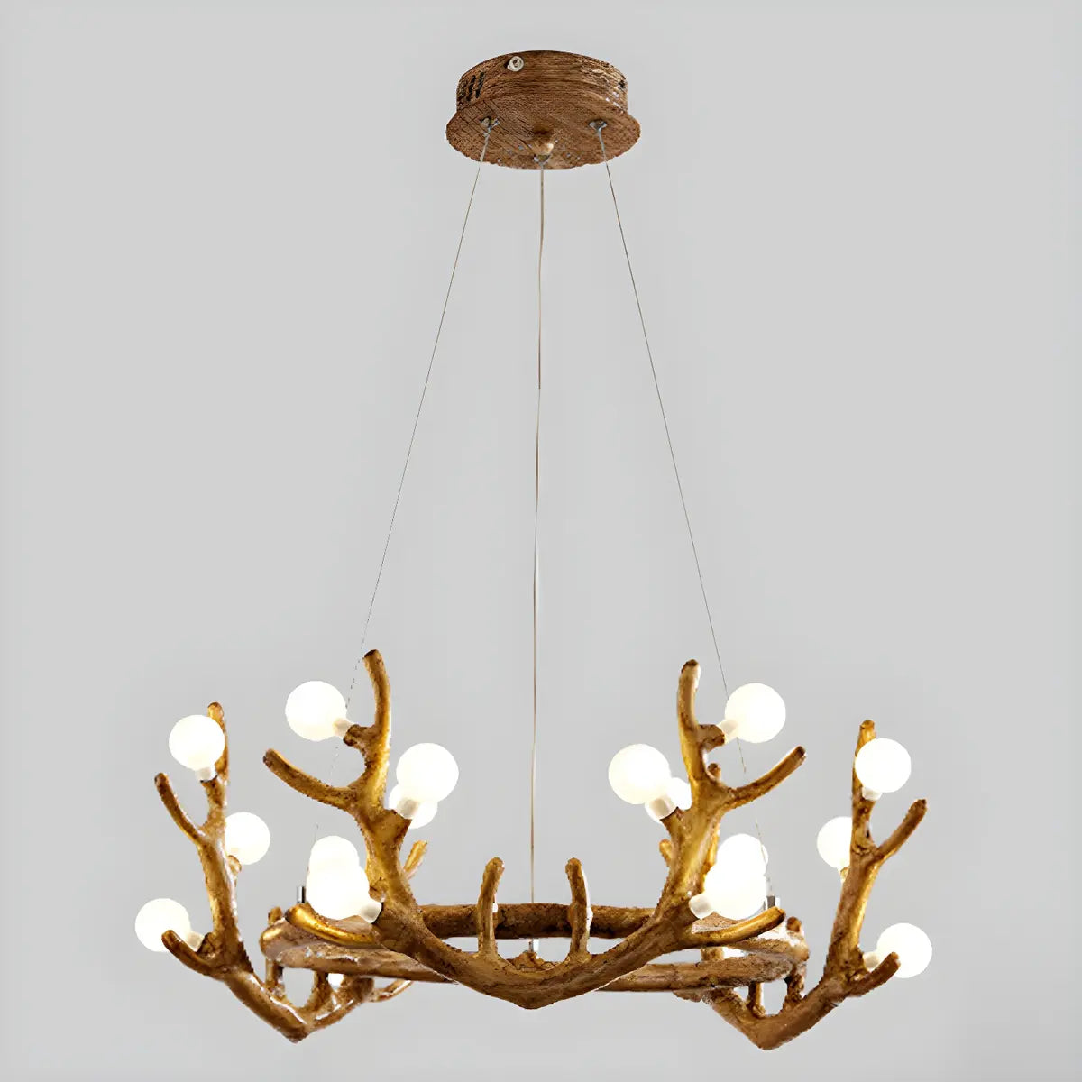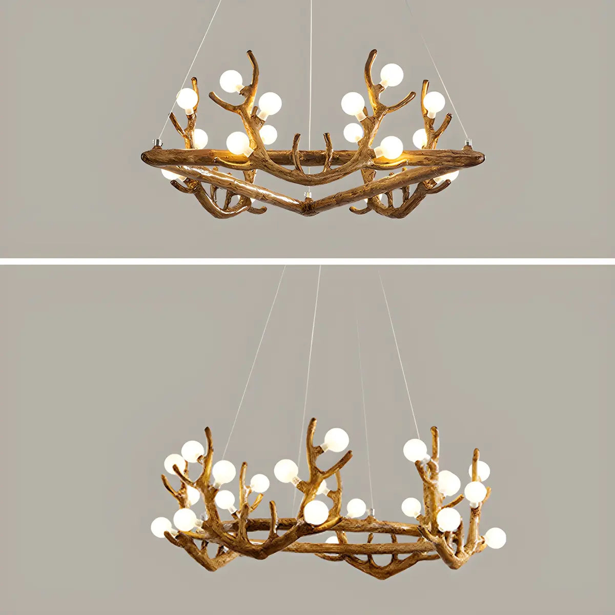ZOWALA - Farmhouse Distressed Wood Circle Antler Chandelier