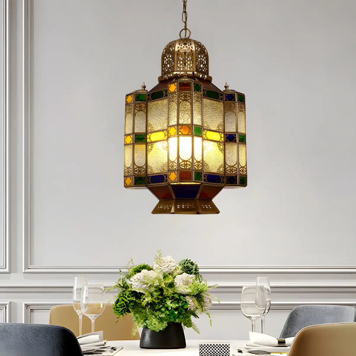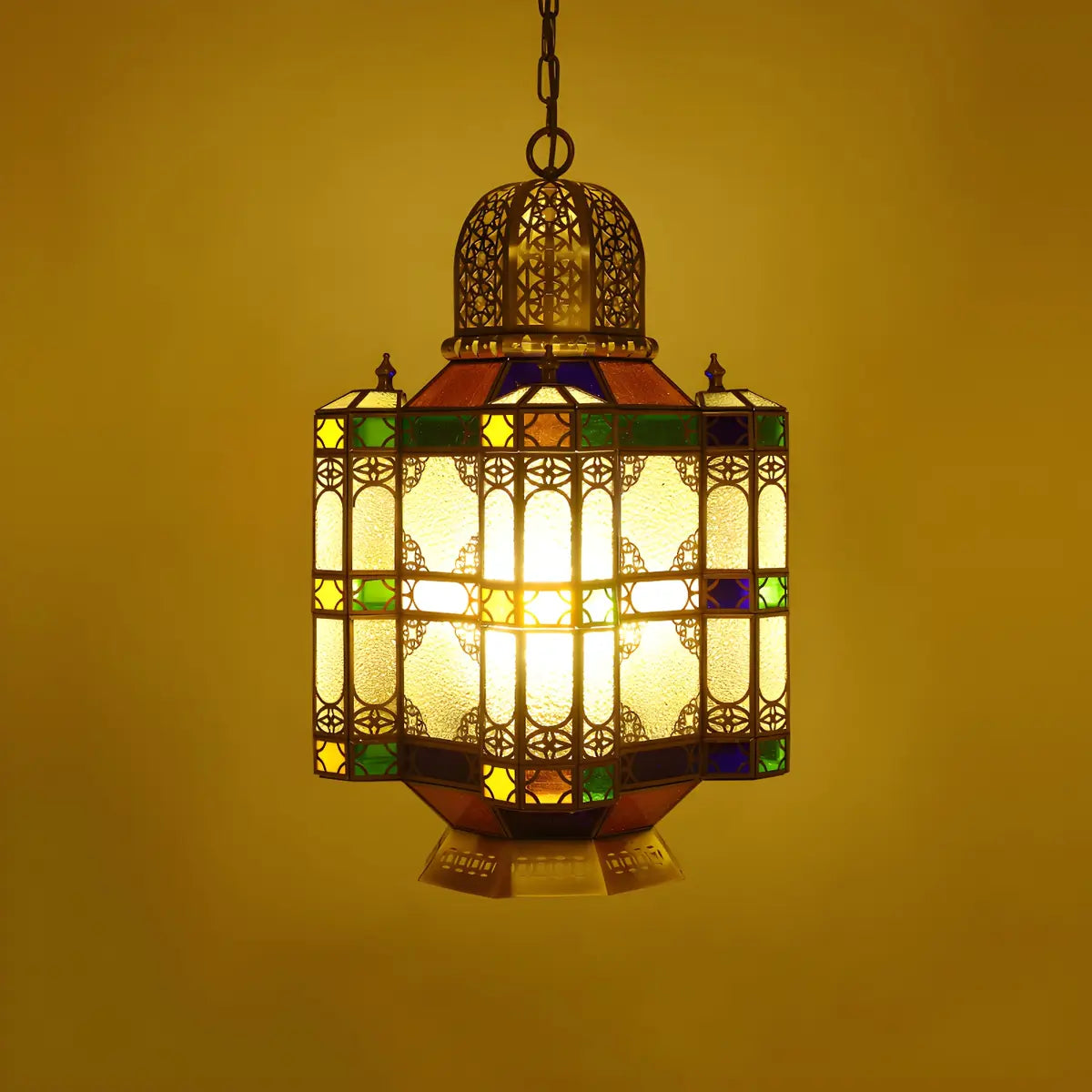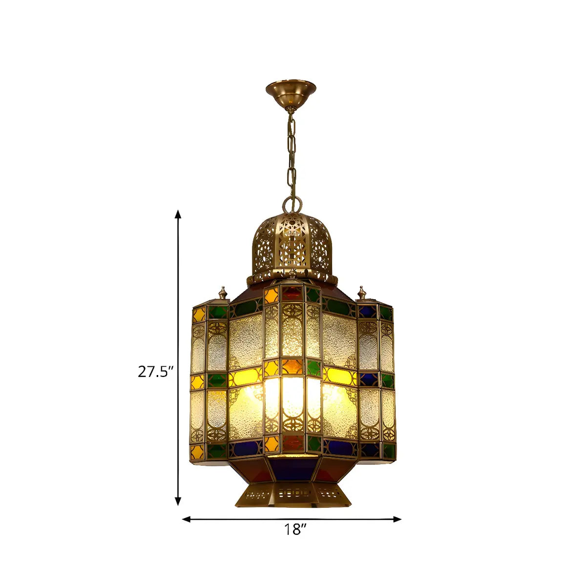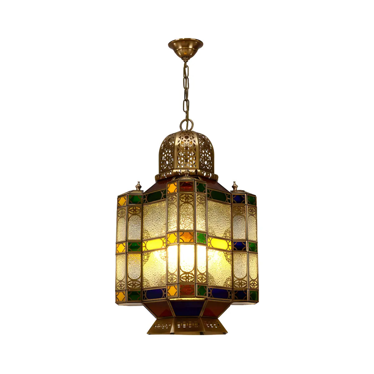 ZOWALA - Art Deco Brass Lantern Stained Glass Chandelier