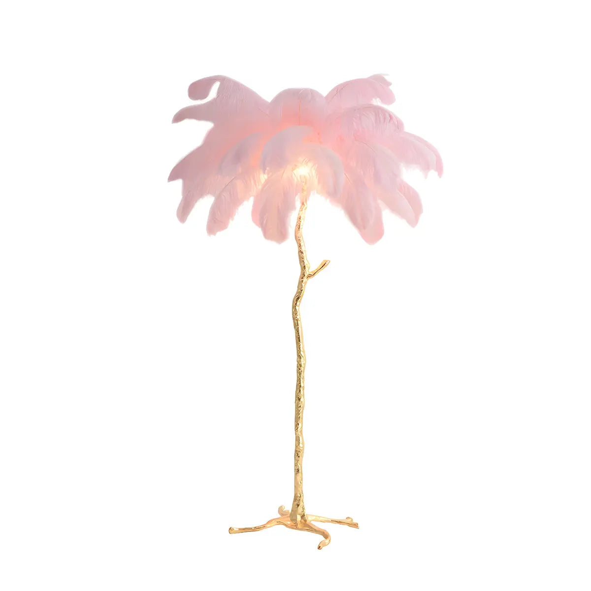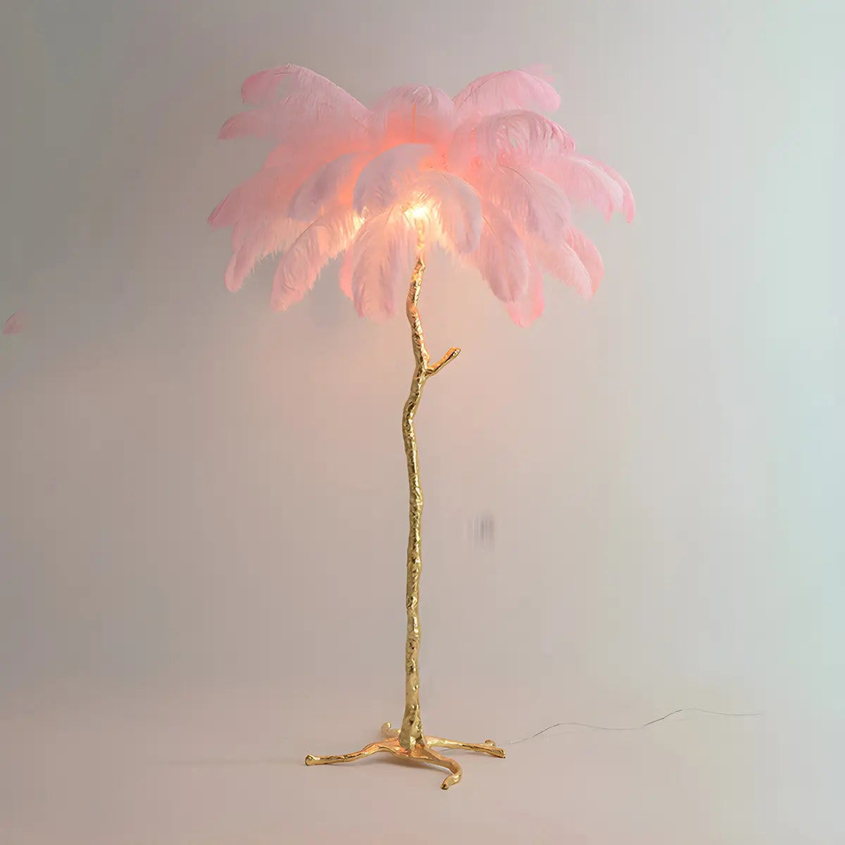 ZOWALA - Artistic Blue Ostrich Feather Gold Floor Lamp